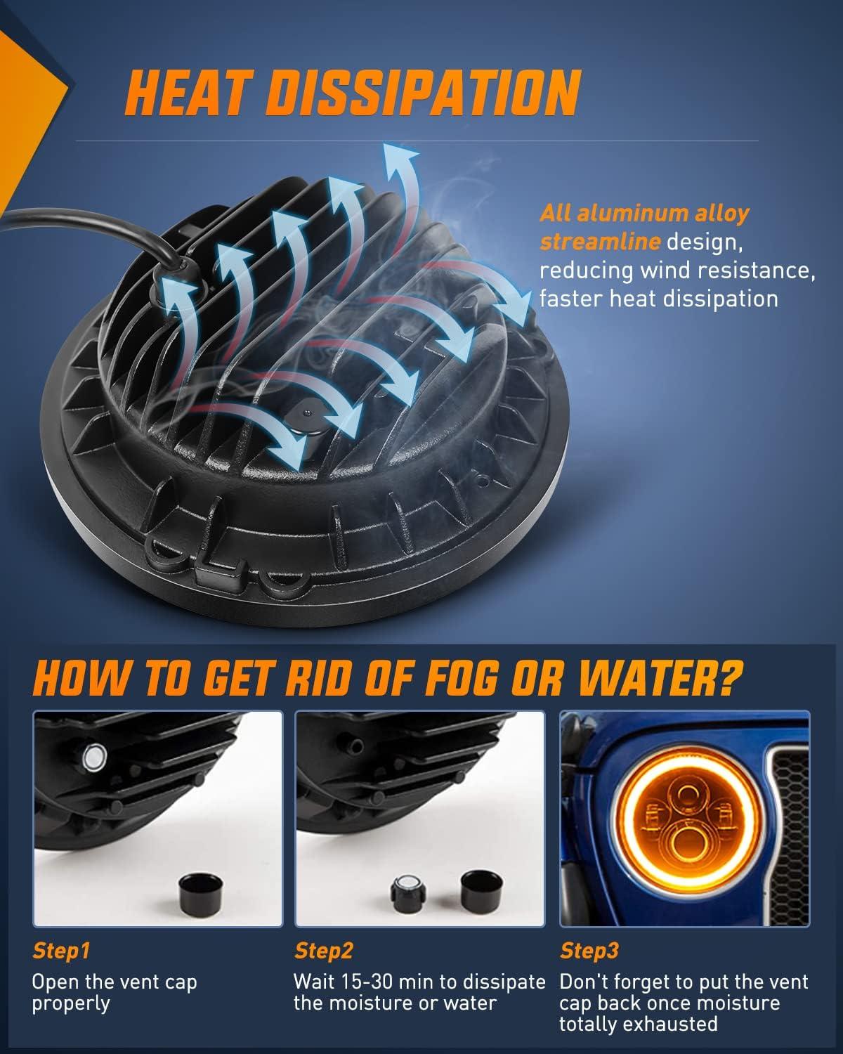 Nilight 4 Inch LED Fog Light Assembly Compatible with 2007 2008 2009 2010 2011 2012 2013 2014 2015 2016 2017 2018 Jeep Wrangler JK Unlimited JKU w/Conversion Cable Clear Lamps(JK Headlight White Amber 2Pcs)