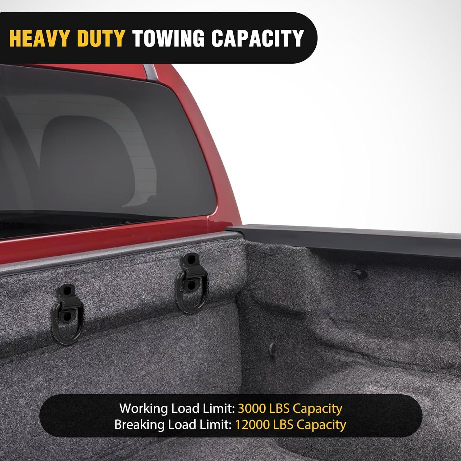 Nilight 4 PCS D Ring Tie Down Anchor 1/2″ Heavy Duty Rings with Screws Bolts on Trailer Truck Bed Cargo 12000 Lbs Break Strength Hook Black