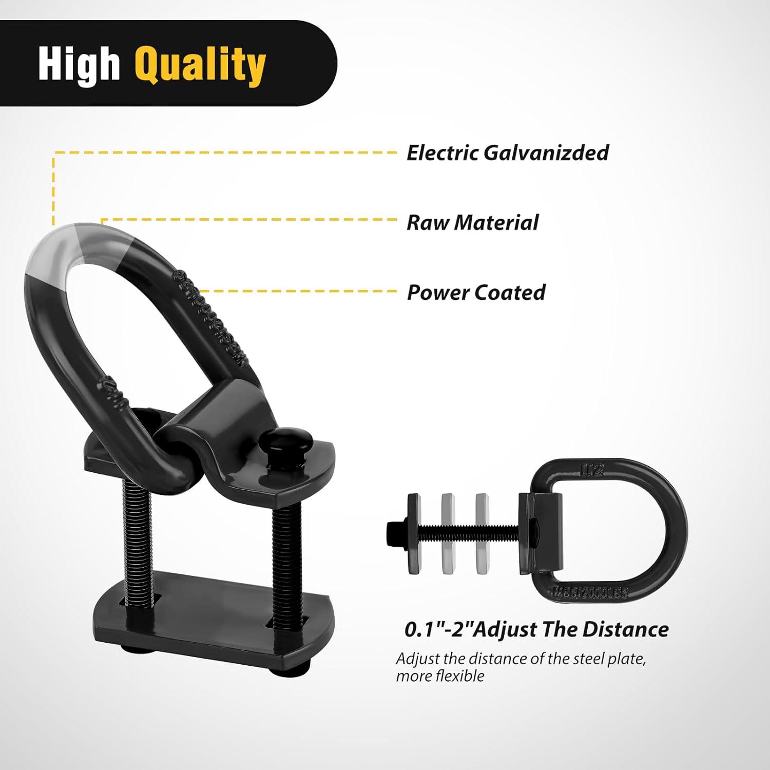 【Adjustable】- these d ring tie down anchor is easy to install, just need to bolt the D ring on wood or metal surface, the mounting clips have 0.1 to 2 inch adjustable distance, the convenient installation will save your time for you bring convenience.