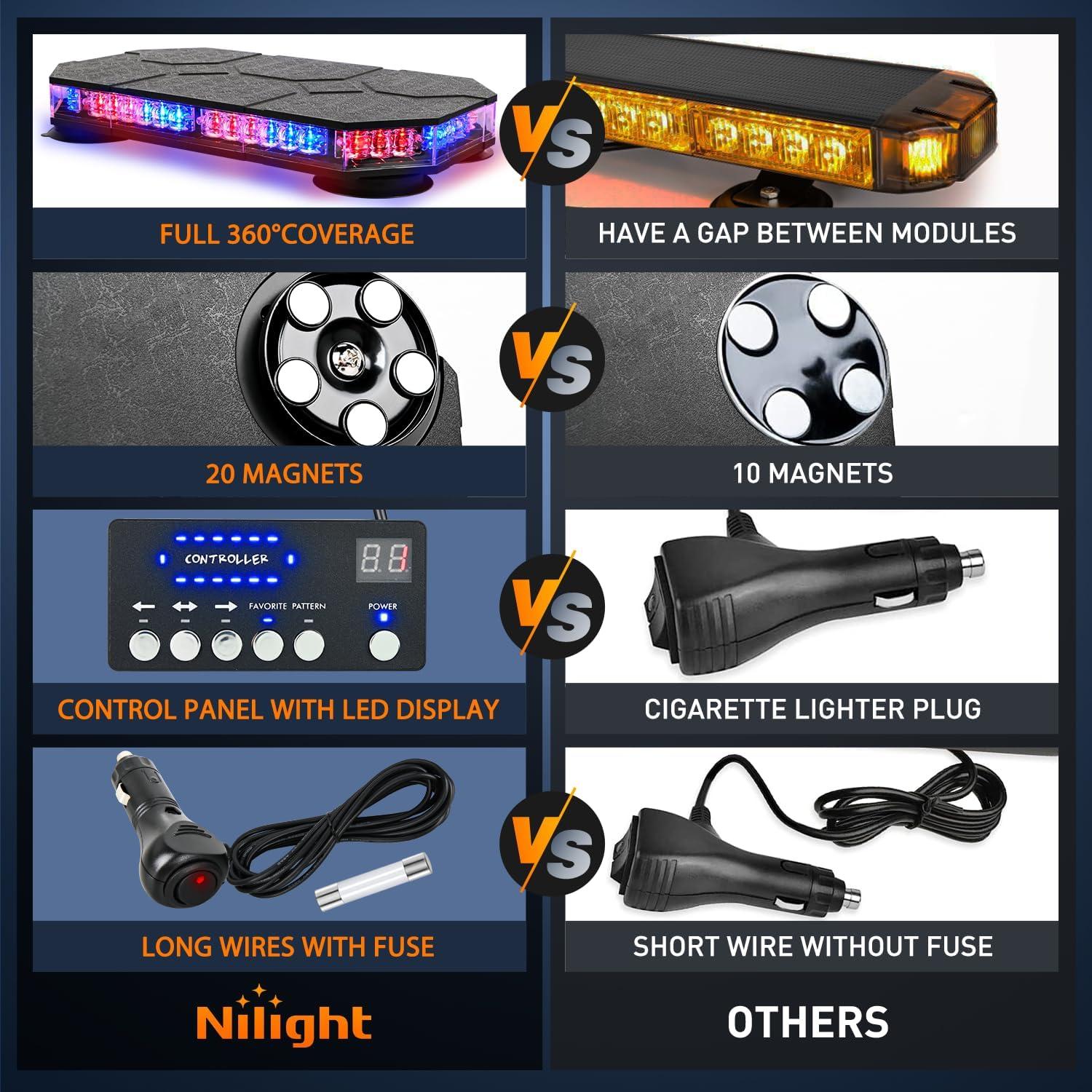 Nilight 42 LED Roof Top Strobe Lights Hazard Emergency Safety Warning Flashing Light Bar w/Control Panel Magnetic Mount 12V 24V Car Truck Tractor Snow Plow Construction Vehicles(Red Blue)