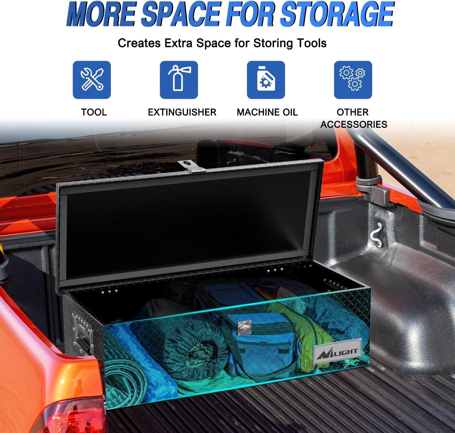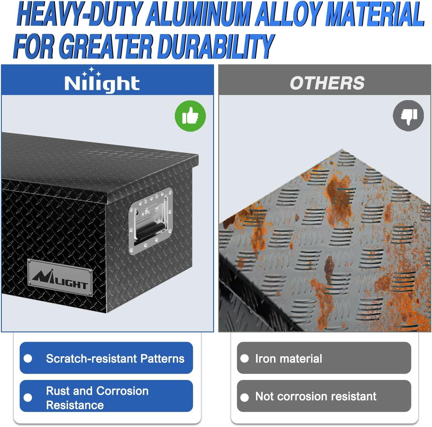 DURABLE ALUMINUM TOOL BOX: Nilight truck toolboxes for truck bed are made of high-strength aluminum with excellent waterproof, rust-proof and corrosion-resistant properties for long-lasting durability! Features a rectangular tool box shape with a striped pattern to increase grip and prevent slipping. Fits easily into the bed of your truck, trailer or RV, providing organized storage for your tools