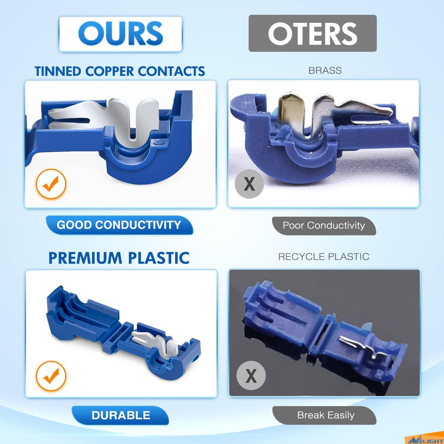 Versatile Kit: 240 piece T-Tap Wire Connectors plus 240 piece Male Spade Connectors, will last for numerous wiring projects such as marine wiring, automotive wiring, scientific wiring or home wiring projects. Allow you to tap into any wires in any applications.