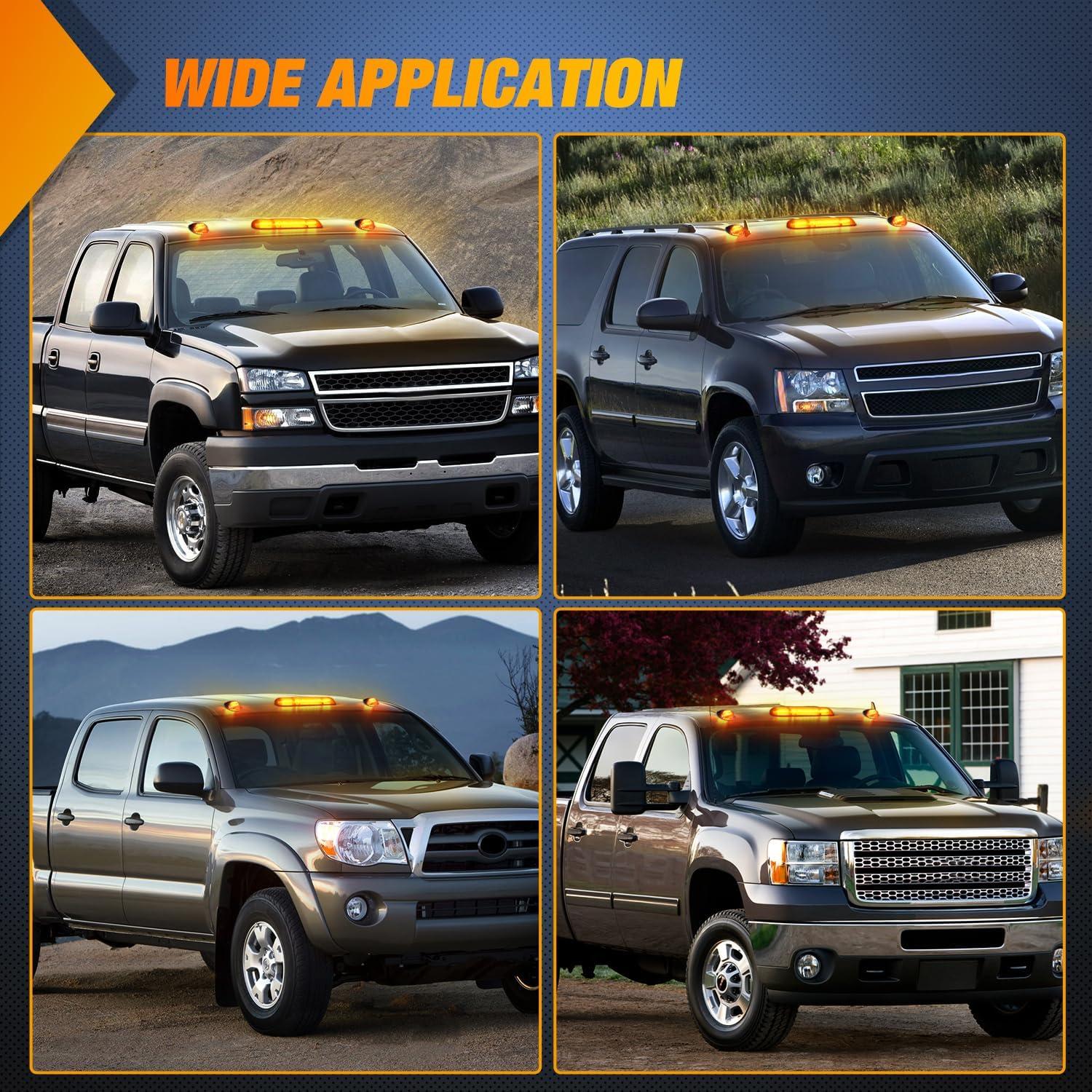 Nilight 4PCS 3.9 Inch 3 Led Truck Trailer Light Front Rear LED Side Marker Lights Clearance Indicator Lamp Waterproof Sealed Surface Mounted LED Marker Light(Smoked Amber -Silverado/Sierra 2002-2007)