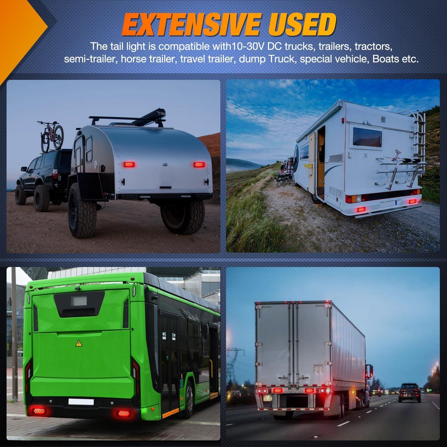 Universal Application: Work on 12V DC system, function as reverse/back up, tail light for all kinds of trucks, trailers, tractors, semi-trailer, horse trailer, travel trailer, dump Truck, special vehicle, etc. Just make sure the hole size before your purchase.