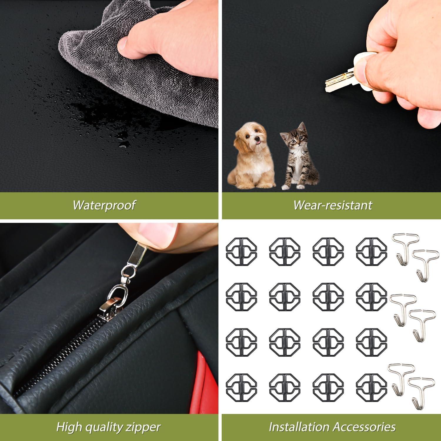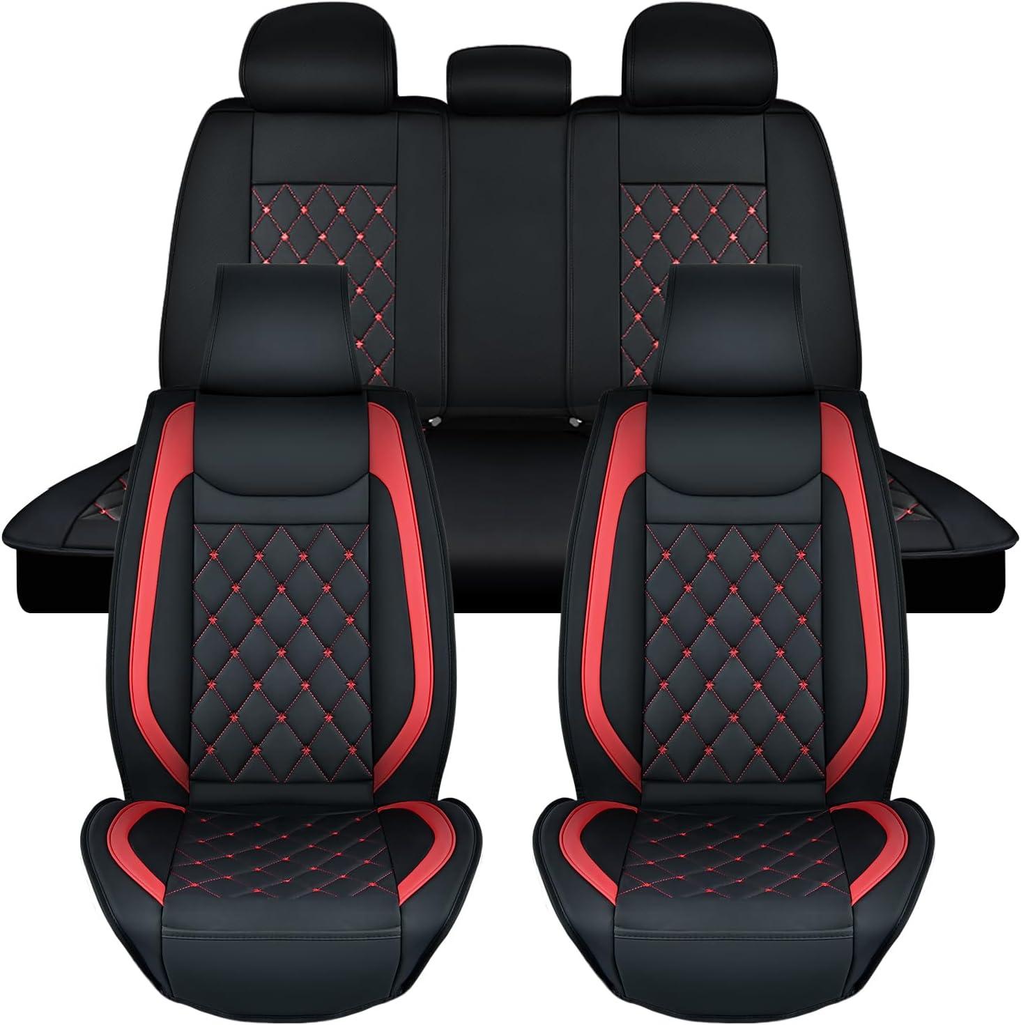 Nilight 5 Car Seat Covers Waterproof Faux Leather Cushions Anti-Slip Universal Fit for 5 Passenger Cars Hyundai Honda Accord Kia Civic Corolla Camry CR-V RAV4 Fusion SUV Truck (Full Set, Black)(Black+Red)