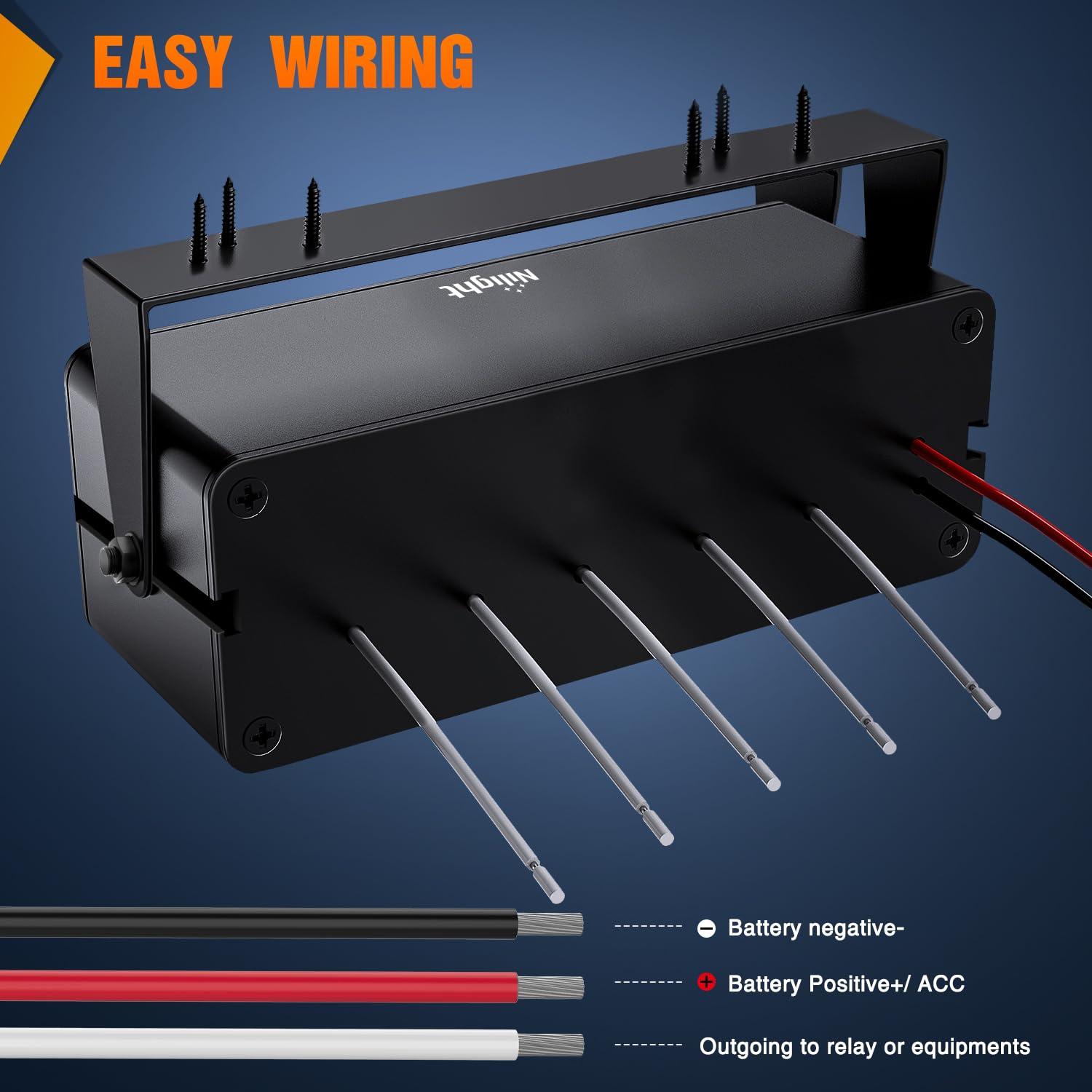 Nilight 5 gang switch box can be used to control Underglow lights, whip lights, rock lights, LED light bars, LED work lights, rear lights, fog lamps, driving lights, headlights, taillights, off-road lights, auxiliary lights, boat lights, etc.