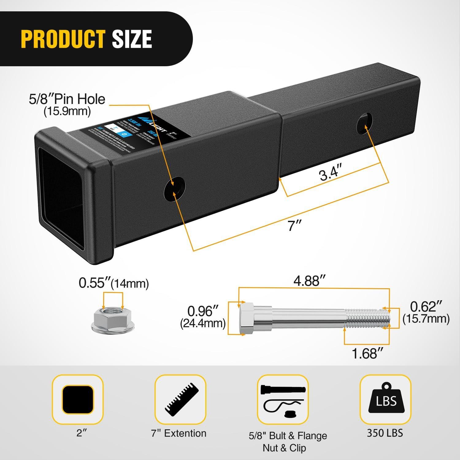 Nilight Hitch Adapter 2″ x 9″ Combo Bar Trailer Receiver Tube Weld-on Raw Steel Hitch Bar(2″ Hitch Extender 7Inch w/Stabilizer)