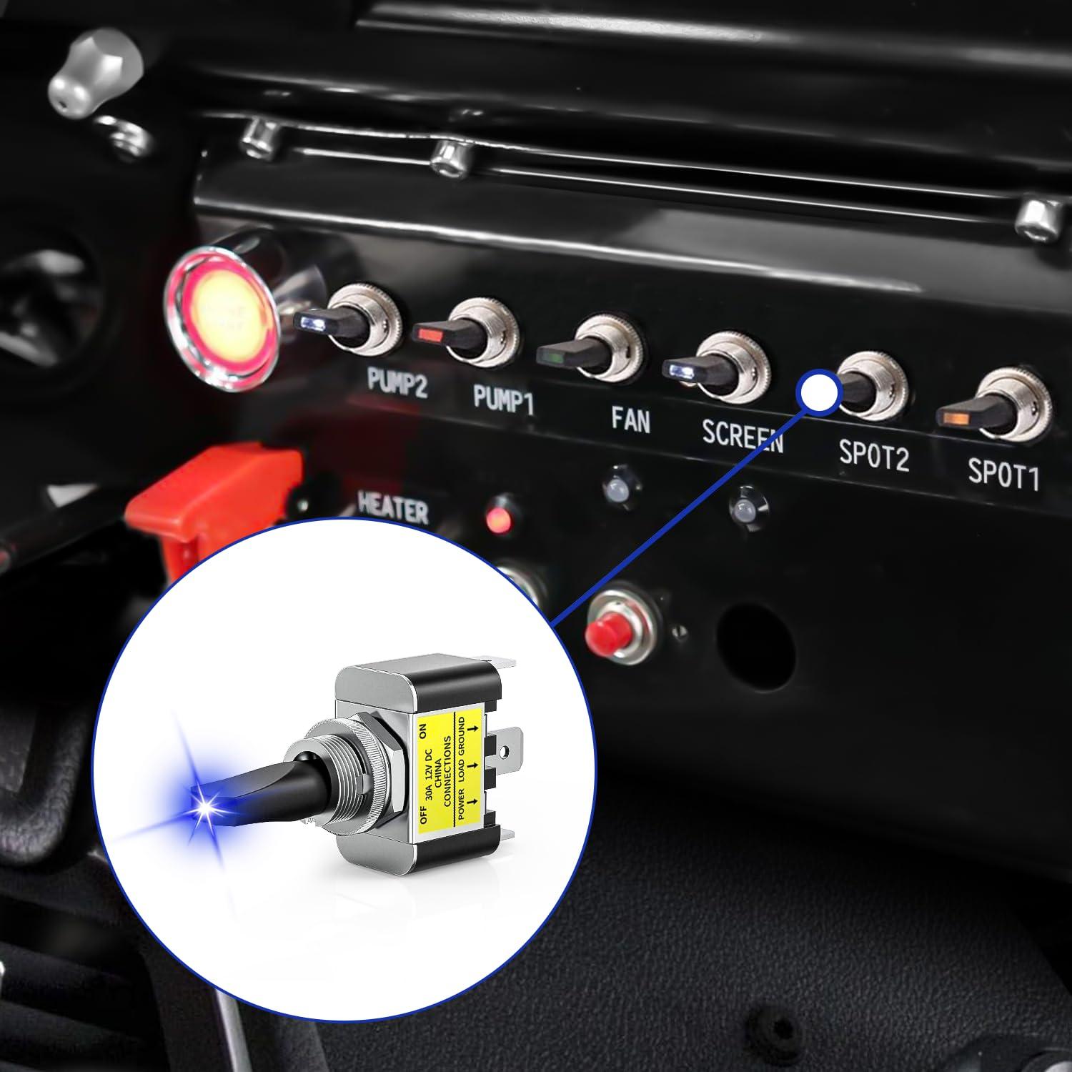 Package Includes: 5 PCS blue LED toggle switches with Blue LED indicator, a wiring diagram