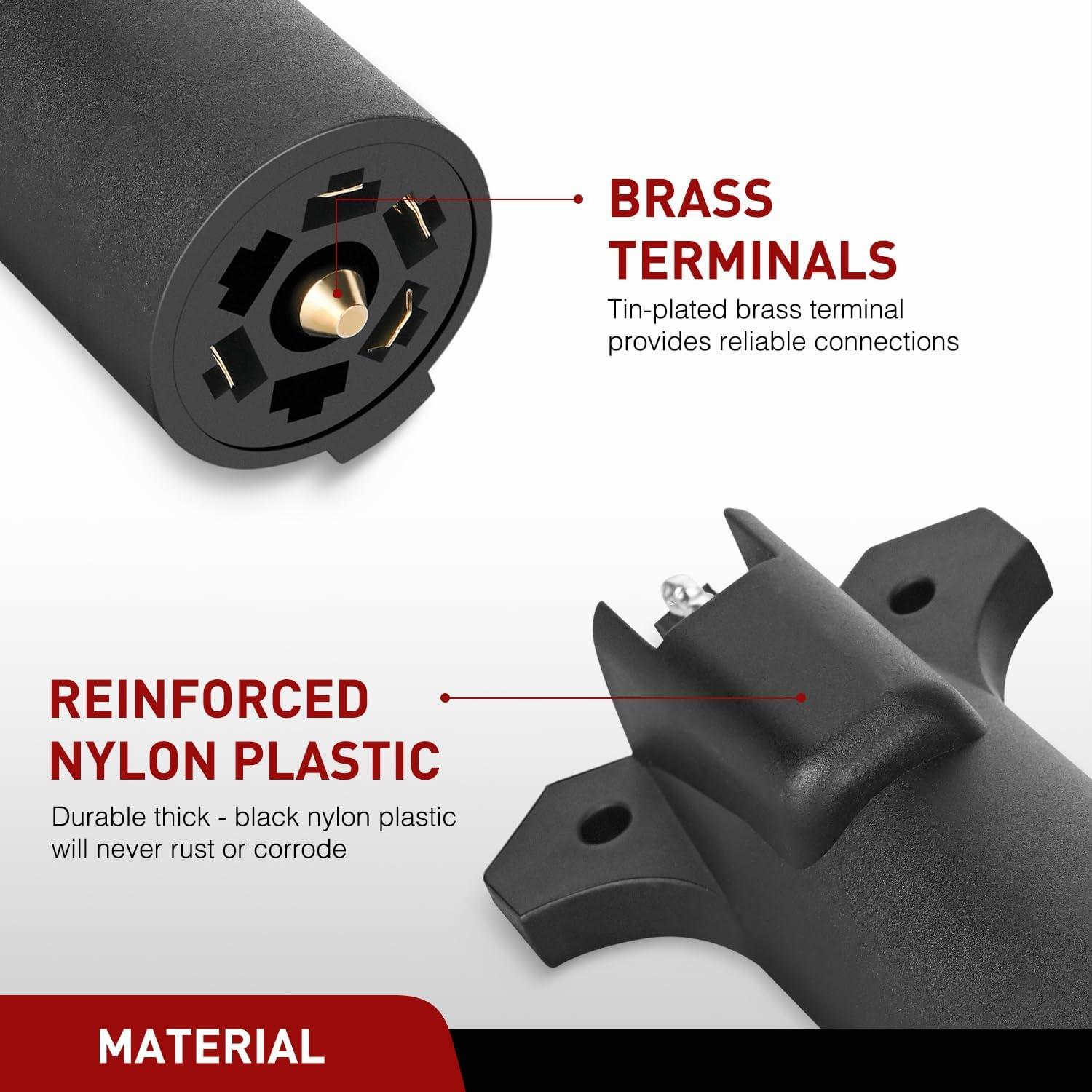 Standard & Strong Fixation: The 7 way trailer wiring harness kit is a great substitute for 7-way RV blade connectors and interchangeable with virtually any 7-way RV connectors. Also for an easy installation, the trailer plug 7 way comes with a mounting bracket and screws included.
