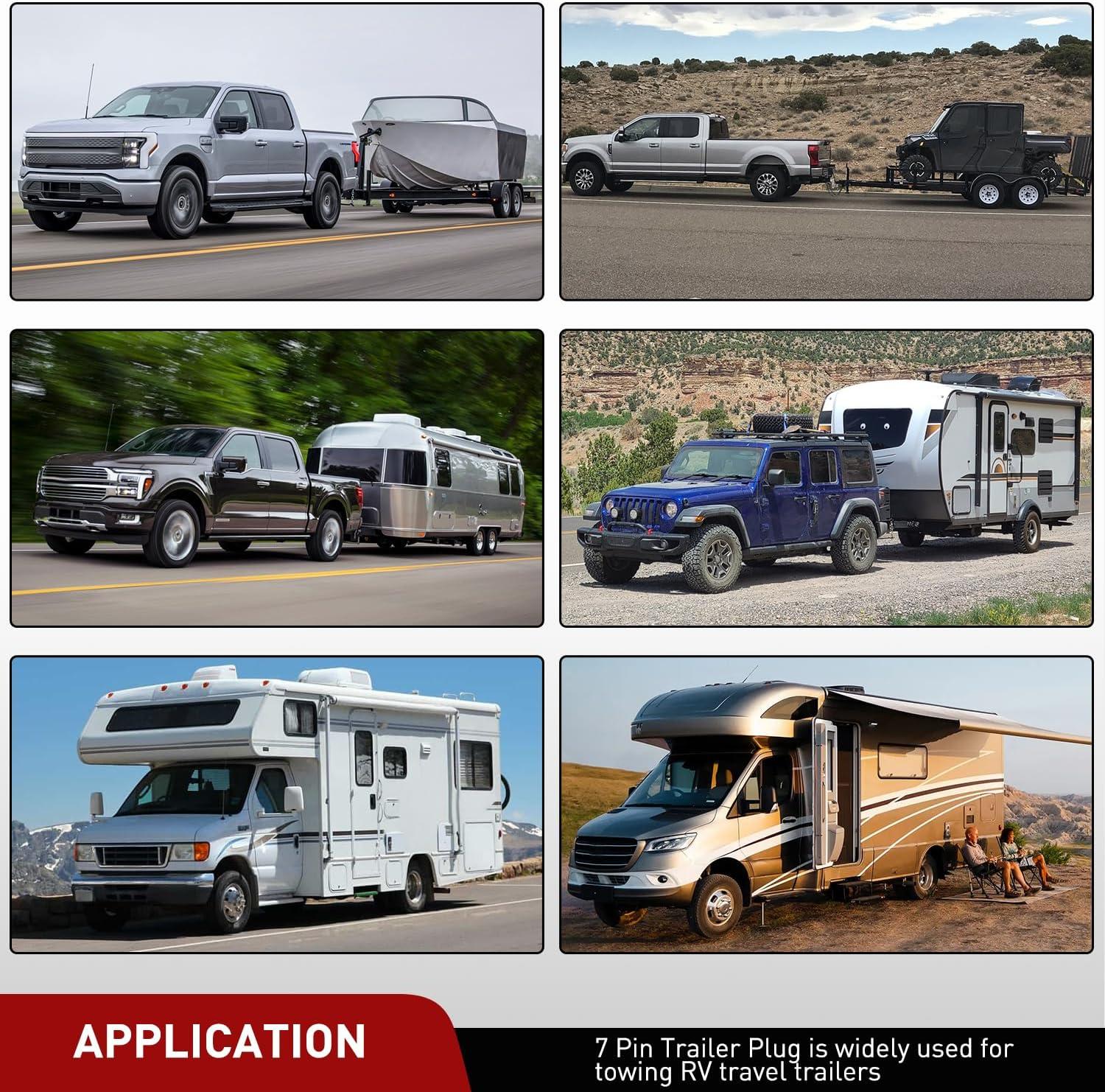 Standard & Strong Fixation: The 7 way trailer wiring harness kit is a great substitute for 7-way RV blade connectors and interchangeable with virtually any 7-way RV connectors. Also for an easy installation, the trailer plug 7 way comes with a mounting bracket and screws included.