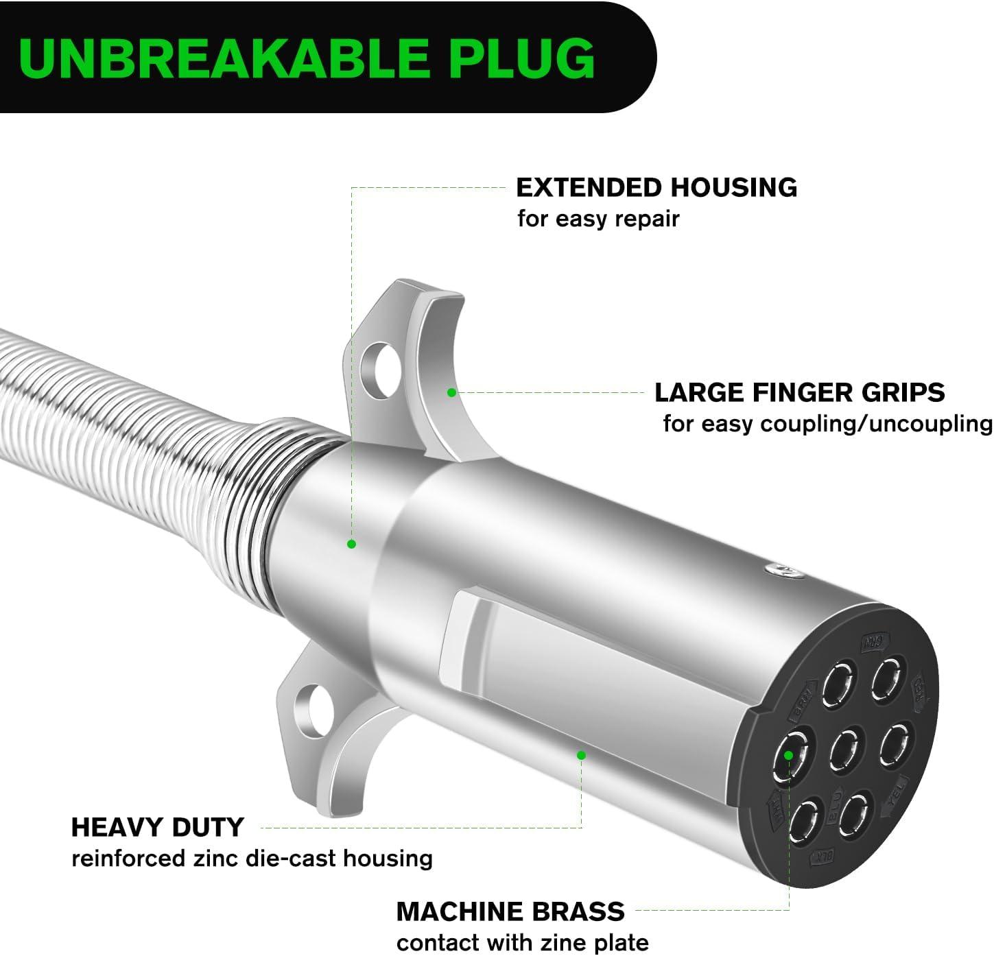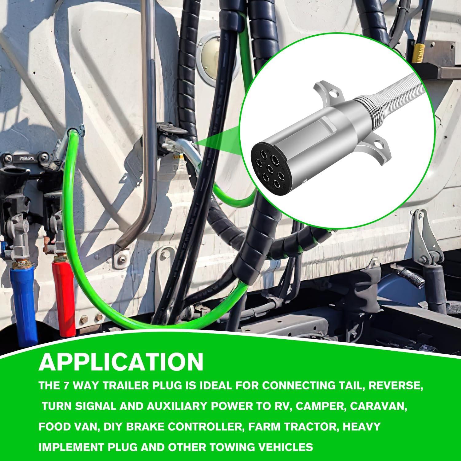 Standard & Strong Fixation: The 7 way trailer wiring harness kit is a great substitute for 7-way RV blade connectors and interchangeable with virtually any 7-way RV connectors. Also for an easy installation, the trailer plug 7 way comes with a mounting bracket and screws included.