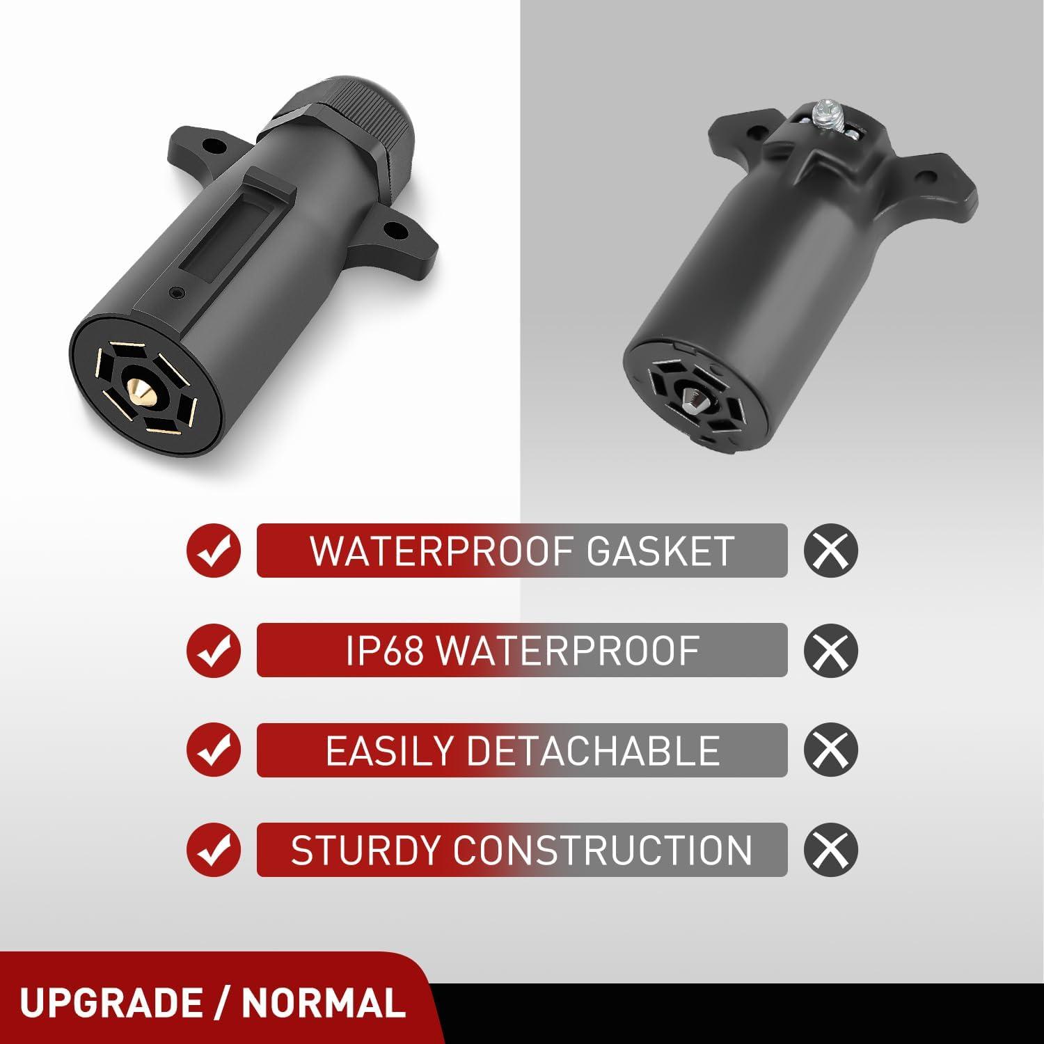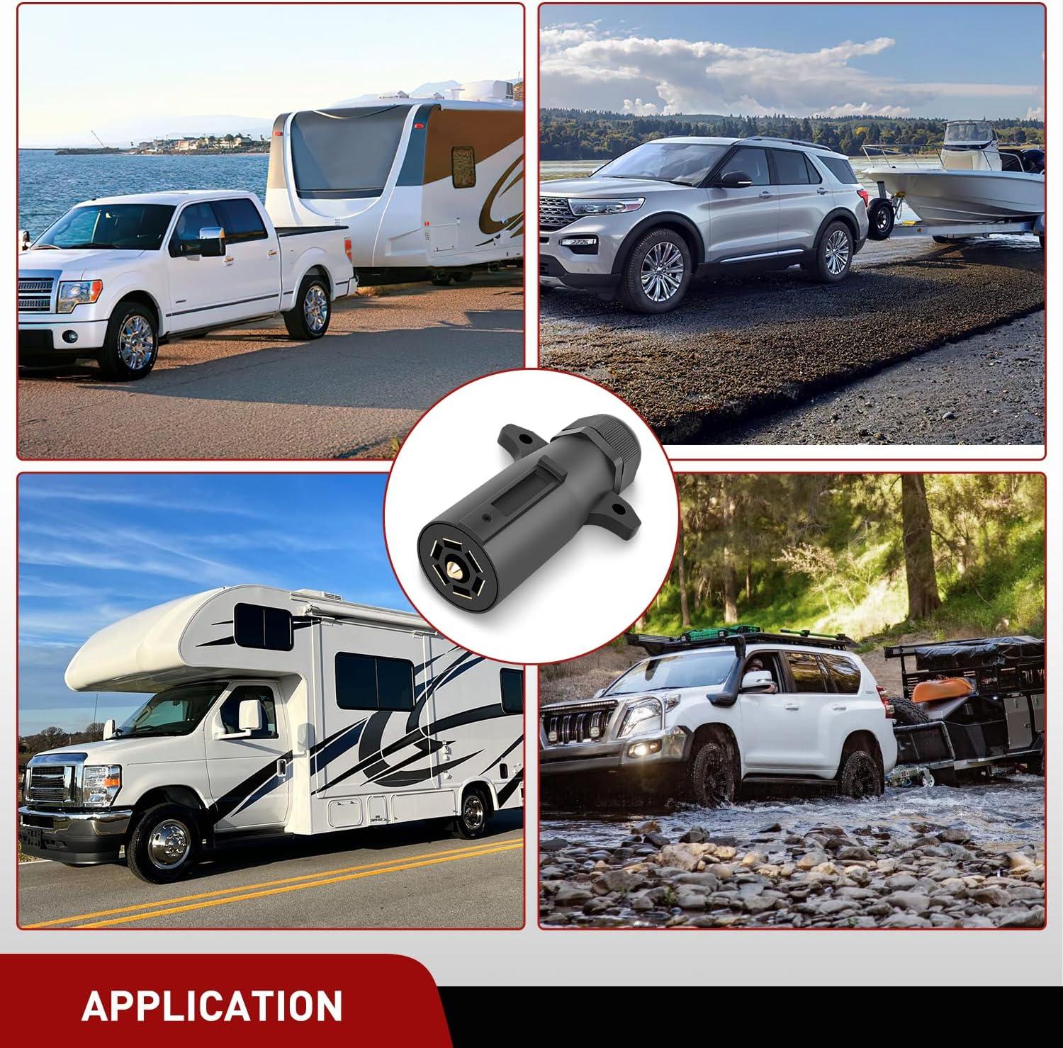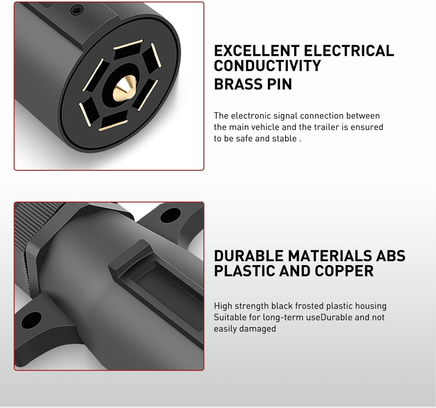 Standard & Strong Fixation: The 7 way trailer wiring harness kit is a great substitute for 7-way RV blade connectors and interchangeable with virtually any 7-way RV connectors. Also for an easy installation, the trailer plug 7 way comes with a mounting bracket and screws included.