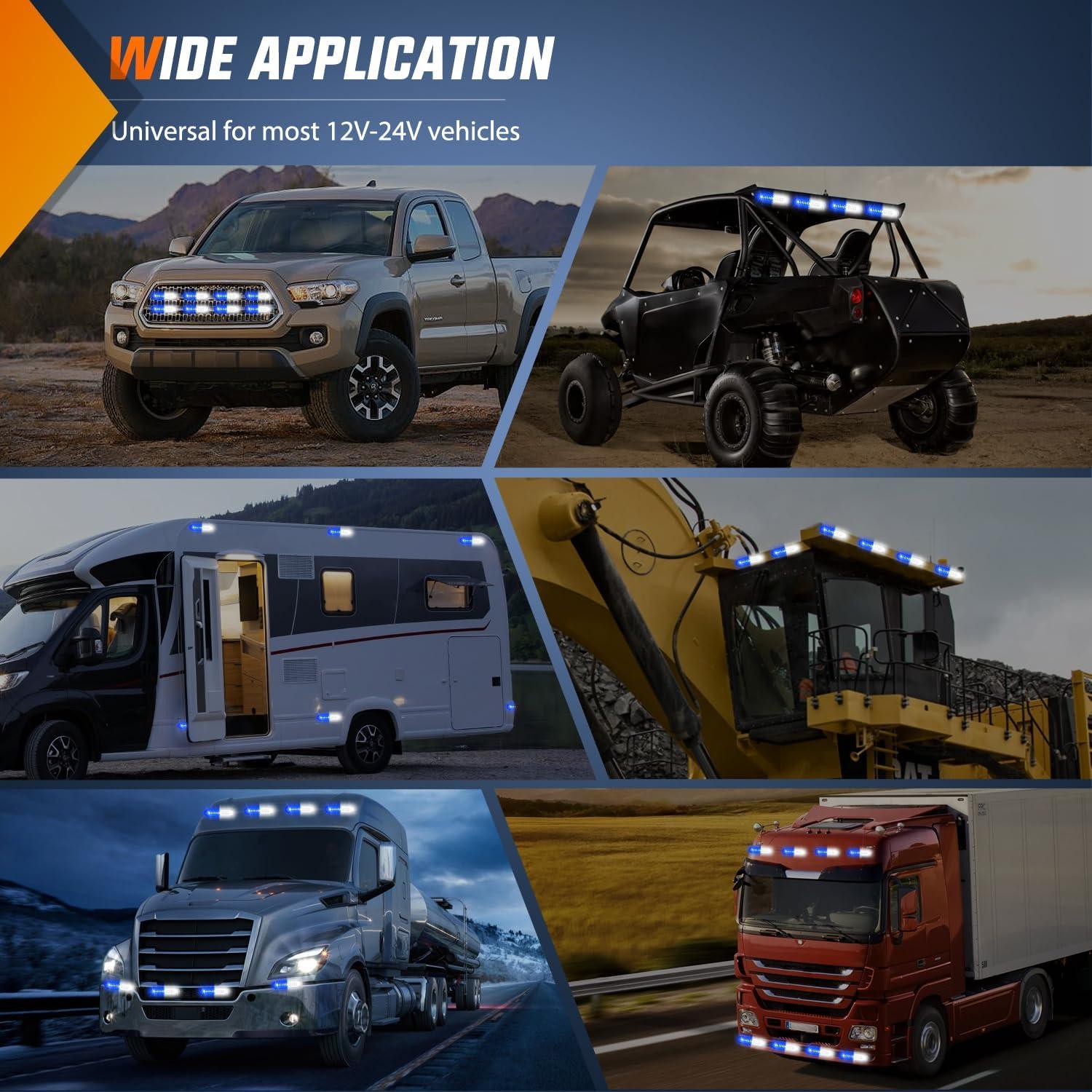 Applications: This strobe light is suitable for postal and city service workers or emergency cars and trucks, construction vehicles, tractors, snowplows or any 12V-24V vehicles. It can be mounted on the side of truck or the grille in front of the vehicle.
