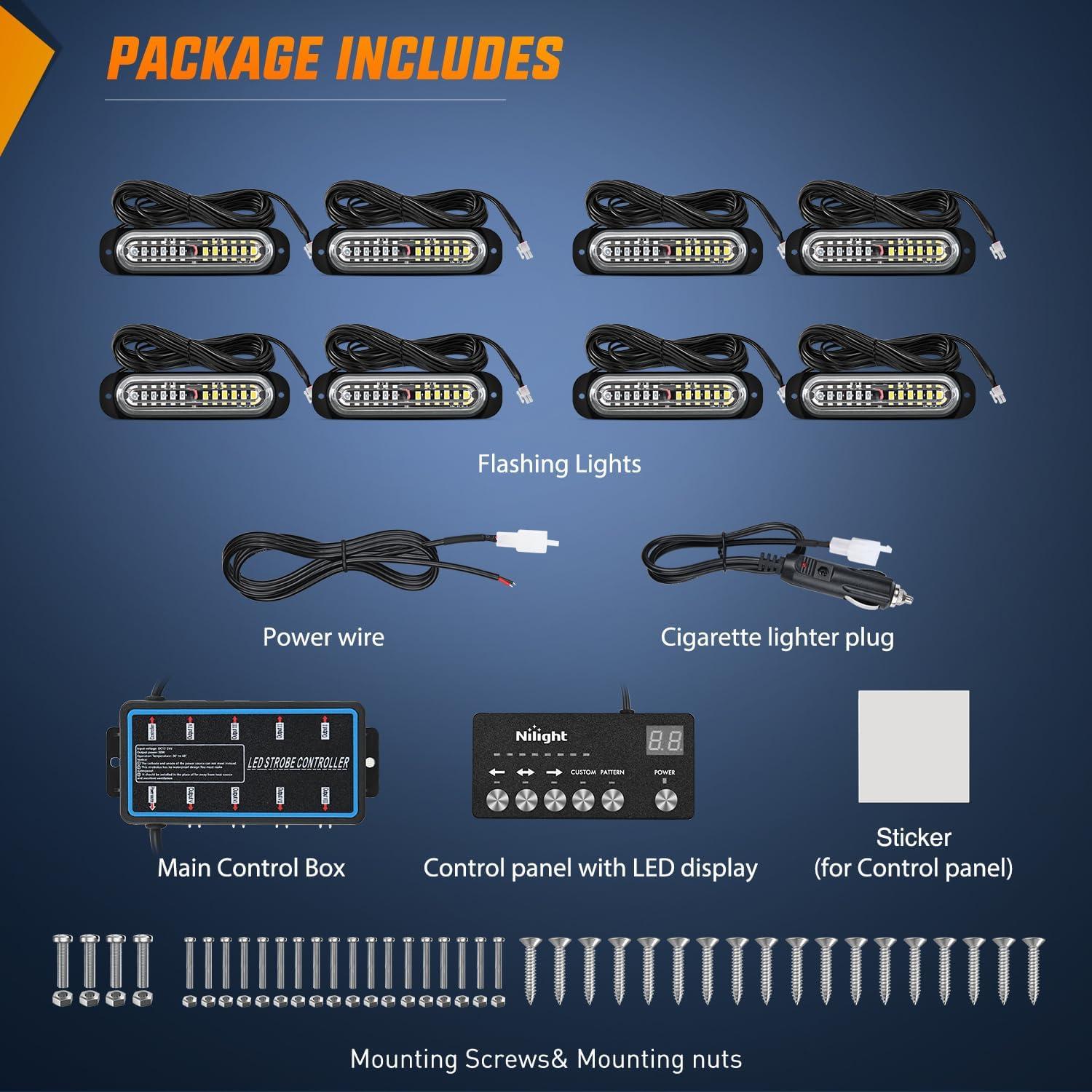 Super Bright: Nilight 8Pcs Surface Mount Strobe Lights are consists of 4pcs single row 12 LED chips and 4pcs double row 24 LED chips. provided maximum illuminate coverage and be visible from greater distance. Visible in daylight, midnight, rainy, foggy or snow days.