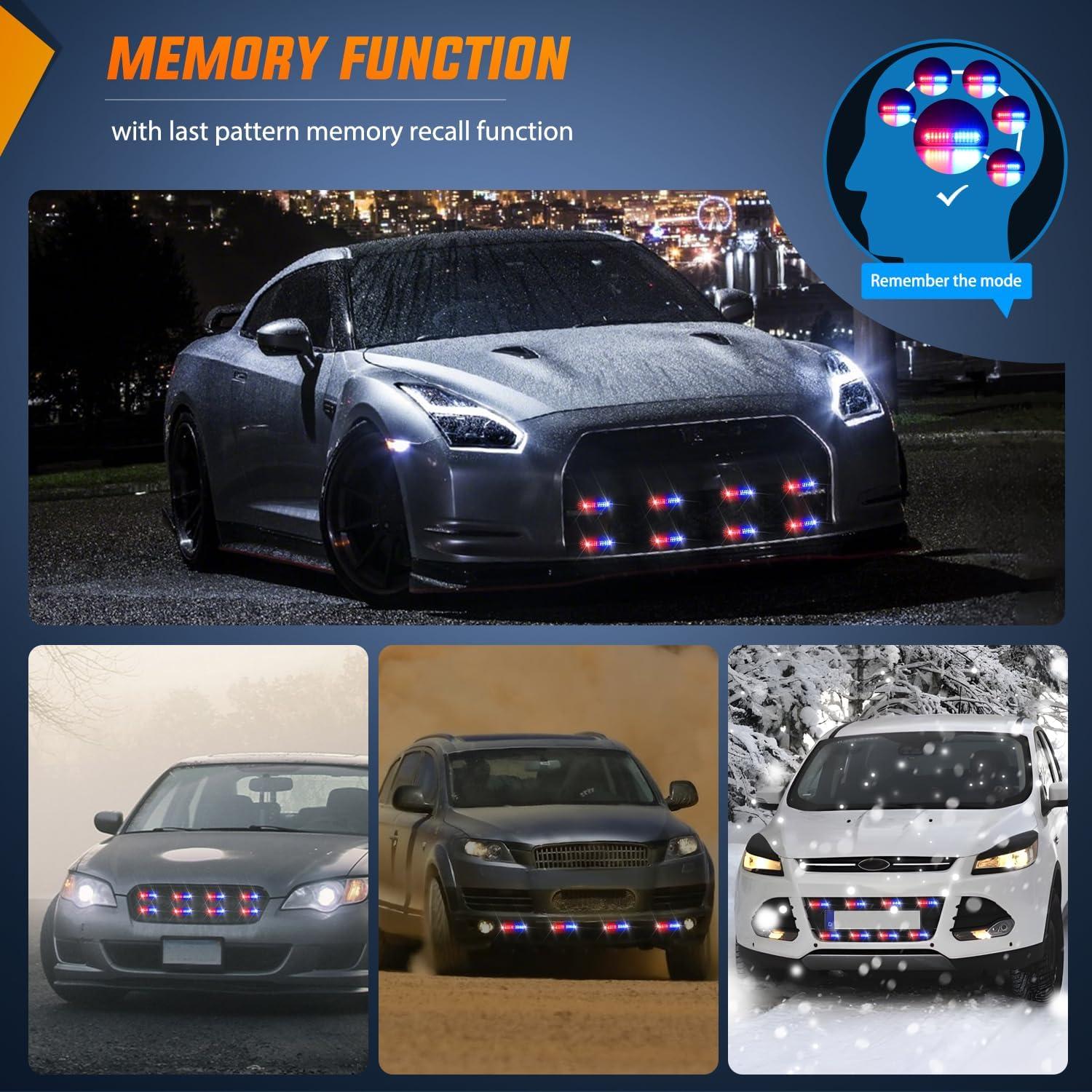 Nilight 8PCS LED Strobe lights 12V Sync Feature Amber White 12 24LED Emergency Hazard Warning Lights with Controller for Cars Trucks RVs Campers, 2 Years Warranty(Red/Blue with Controller)