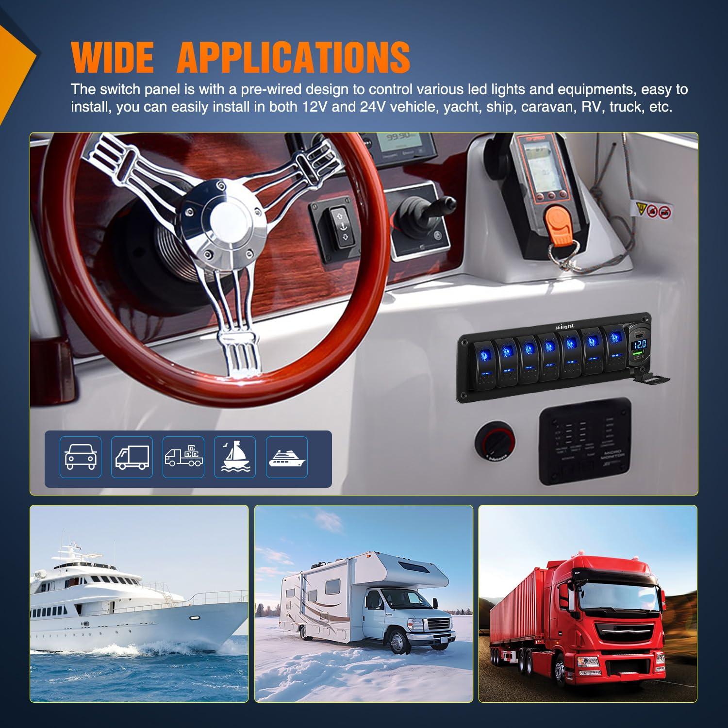 Nilight – 90107D 4 Gang Rocker Switch Panel Waterproof Pre-wired Switch Panel with USB Charger & Power Socket and Fuse DC 12V 24V Rocker Switch Panel for Car Rv Vehicles Trucks,2 Years Warranty(7 Gang with USB and Voltmeter)
