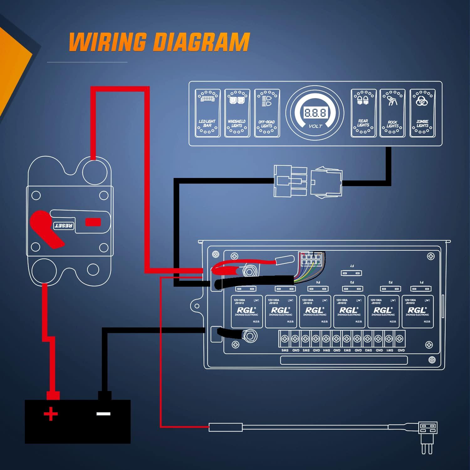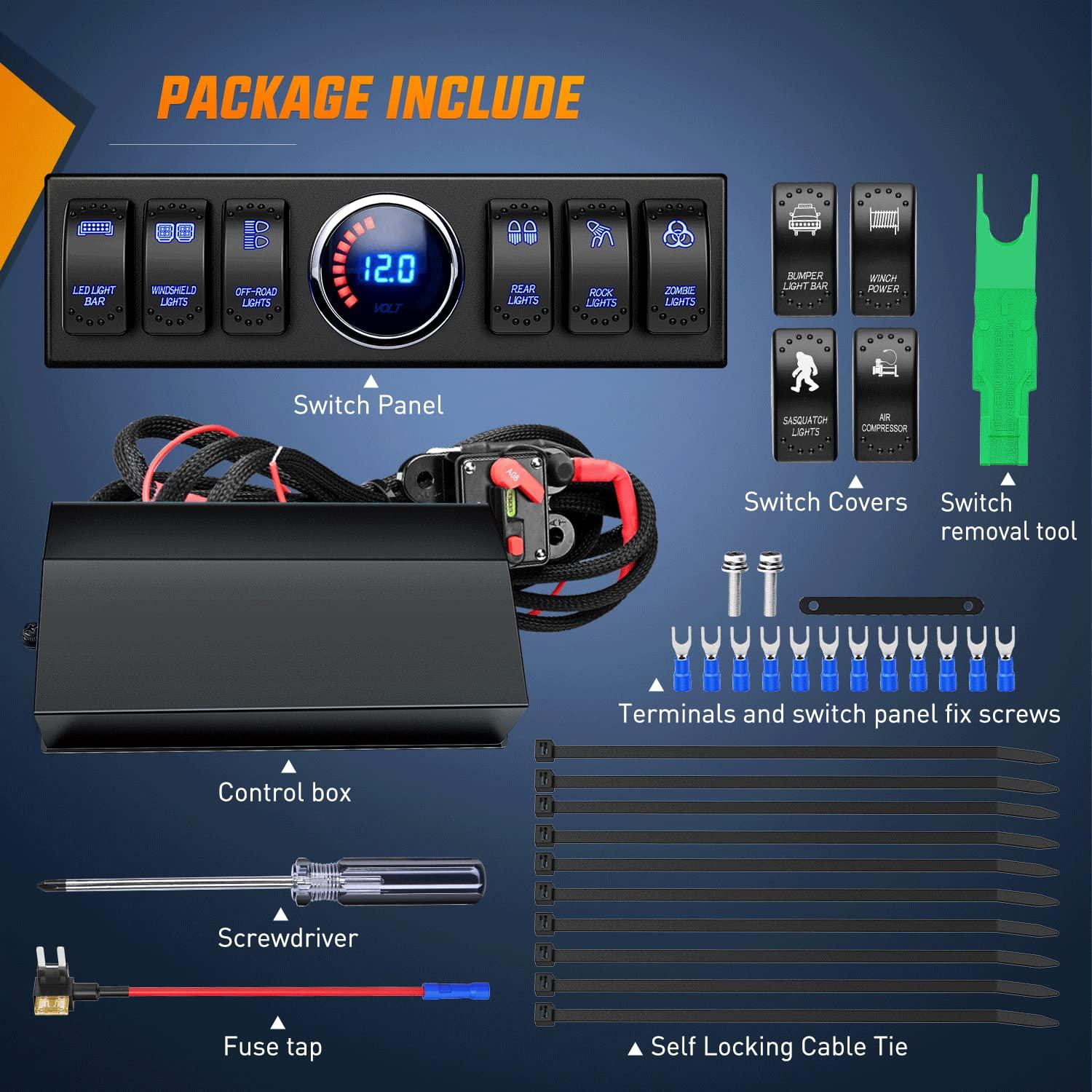 Coming with 4 different color rocker switches(Amber/Blue/Red/Green), it can be used for 4 different light control at a time.Perfect for controlling Led Light Bars, Rear Lights, Rock Lights, Windshield Lights,Off road Lights, Sasquatch Lights, Zombie lights and underglow lights etc.