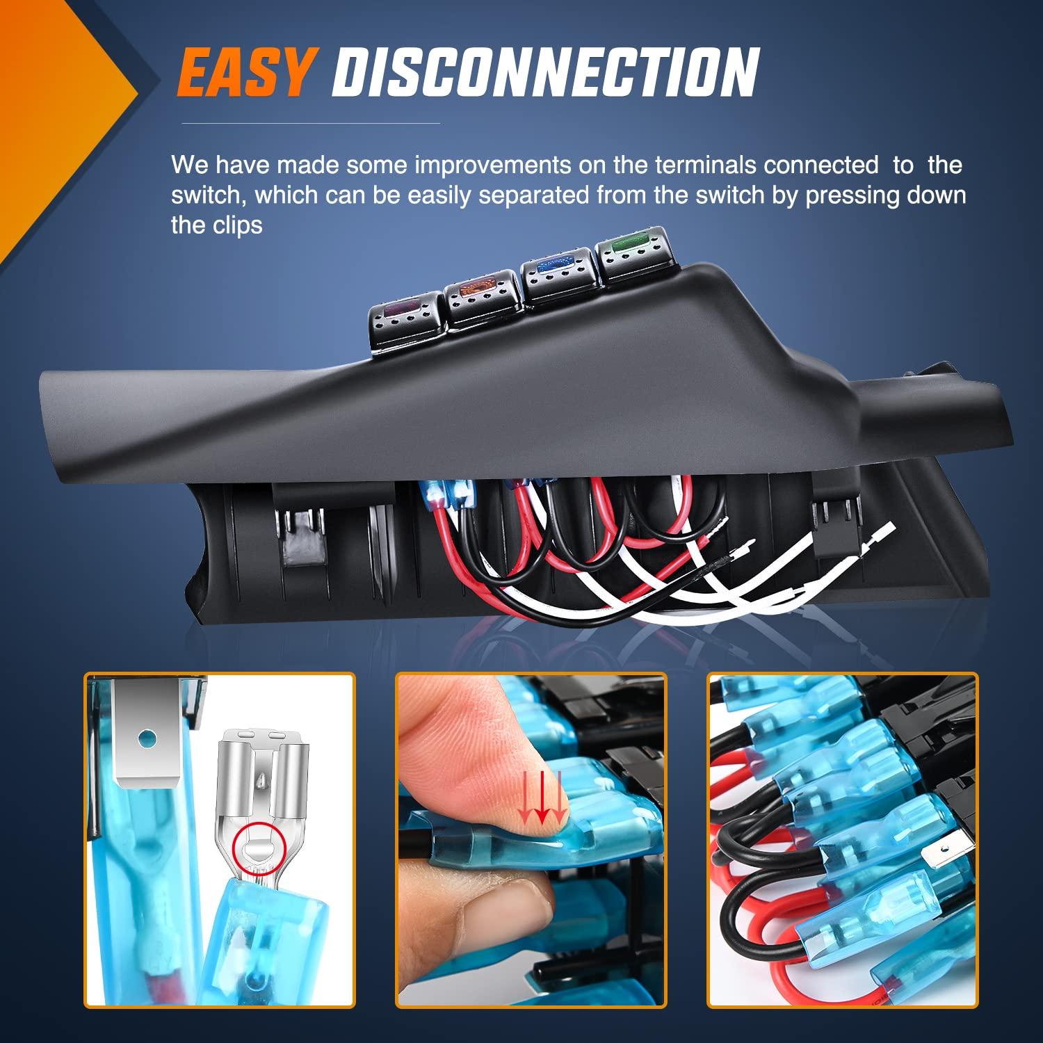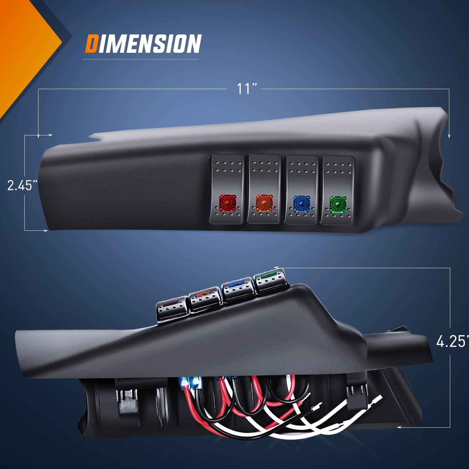 Nilight A-Pillar Switch Pod 12V Left Driver Side A Pillar Rocker Panel with Backlit Label Stickers Pre-Wired On Off 4 Color Toggle Switches for Jeep Wrangler JK JKU 2011-2018(A-Pillar Switch Pod)
