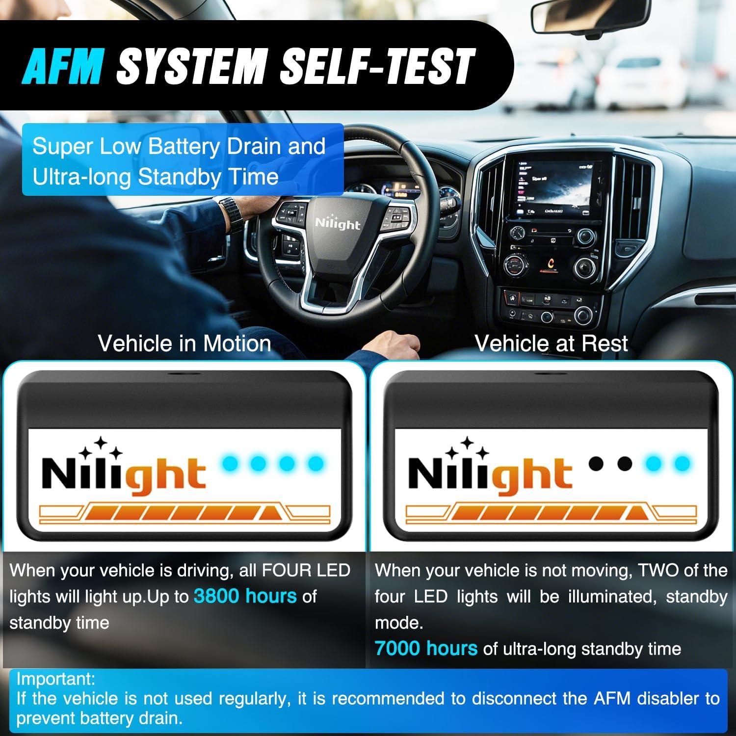 ENHANCED DRIVING PERFORMANCE: Nilight AFM/DFM Disabler keeps your engine in full power V6/V8 mode at all times, allowing the vehicle to guaranteeing continuous operation in full-cylinder mode in all conditions. Say goodbye to the constraints of 4-cylinder mode and enjoy a smoother driving experience