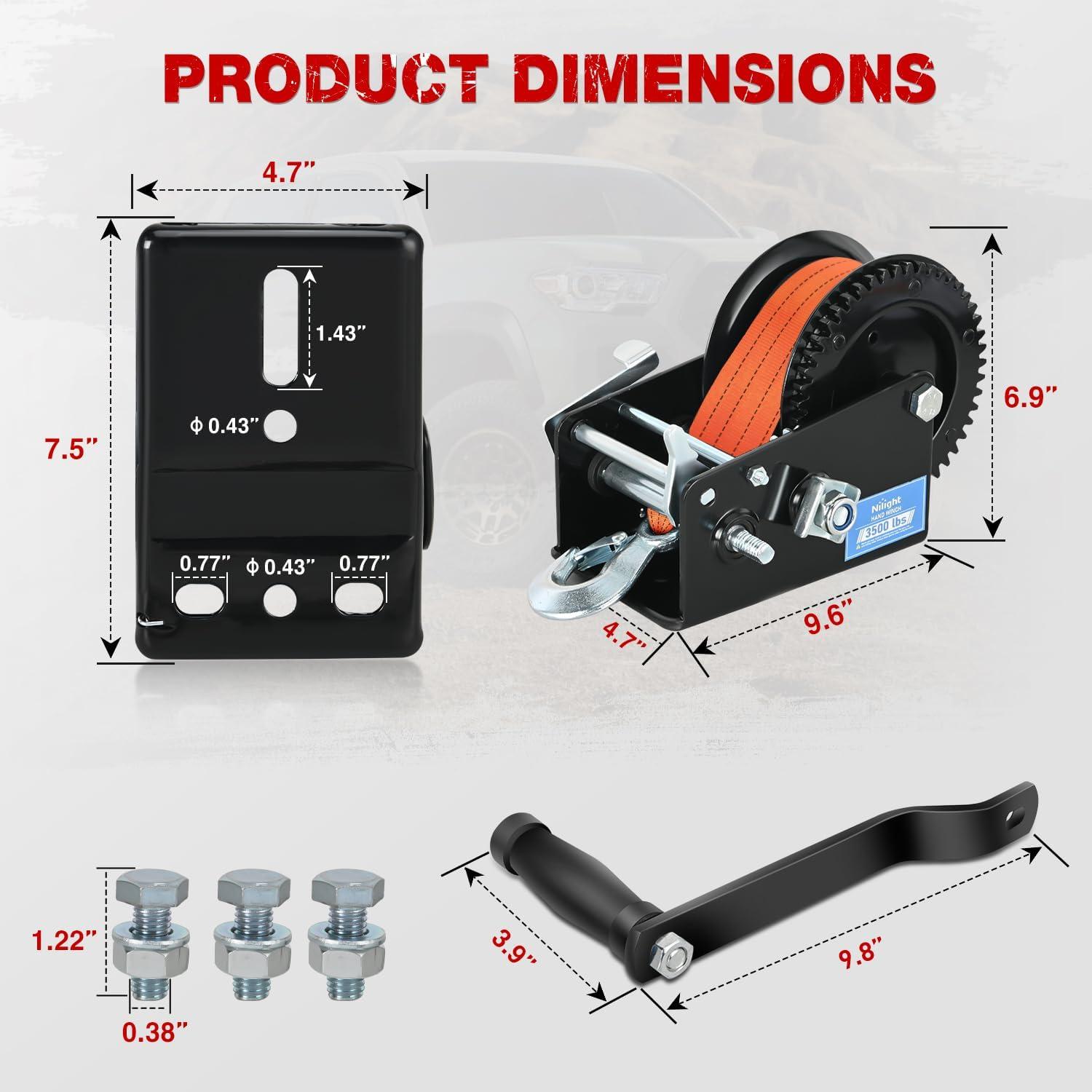 EFFORTLESS TOWING: Nilight Heavy Duty boat winch has an excellent 3500 lbs / 1600 kg of powerful pulling force, a tough wear-resistant high-strength polyester strap (L33' x ø 2″ Orange), providing safe and reliable towing. Allows you to load your boat onto your tow trailer smoothly, safely, and accurately