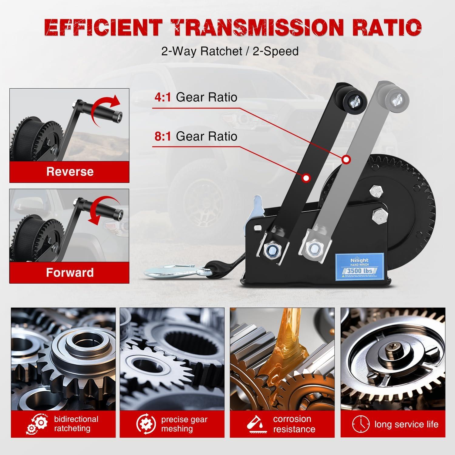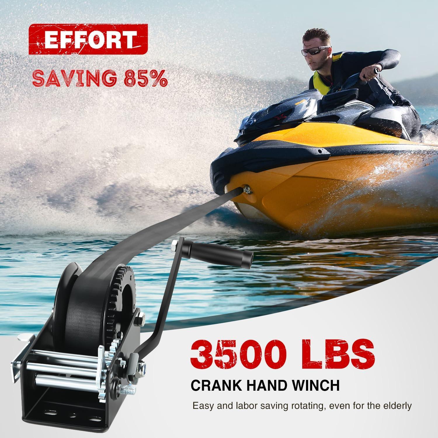 Nilight Boat Trailer Winch 3500 LBS Hand Crank Winch Heavy Duty Boat Winches with 33 FT Orange Strap Rope Hook Two Way Ratchet 4:1 8:1 Gear Portable Marine Manual Winch for Trailers Boat RV ATV Towing(Black)