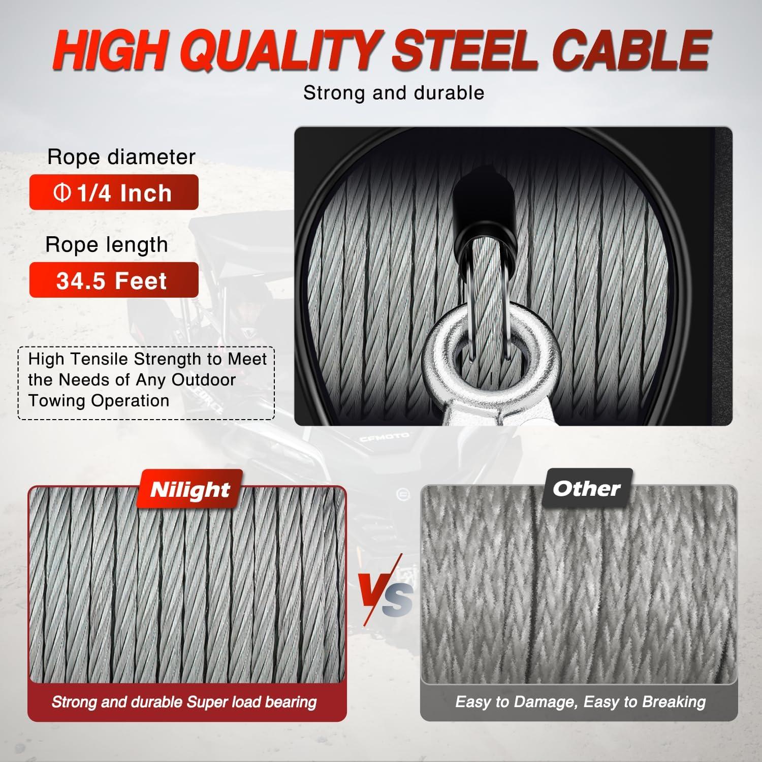 ENHANCED POWER MOTOR: Nilight marine multi-purpose winch is driven by a 12 V DC motor. Electric boat winch has a rated line pull of 3500 pounds, a marine rated line pull of 6500 pounds and a rolling rated line pull of 9500 pounds. pulling Capacity is reduced as incline increases. Plus the 3-stage planetary gear drive system can handle a max boat size of 18 FT and a max boat weight of 5,000 lbs