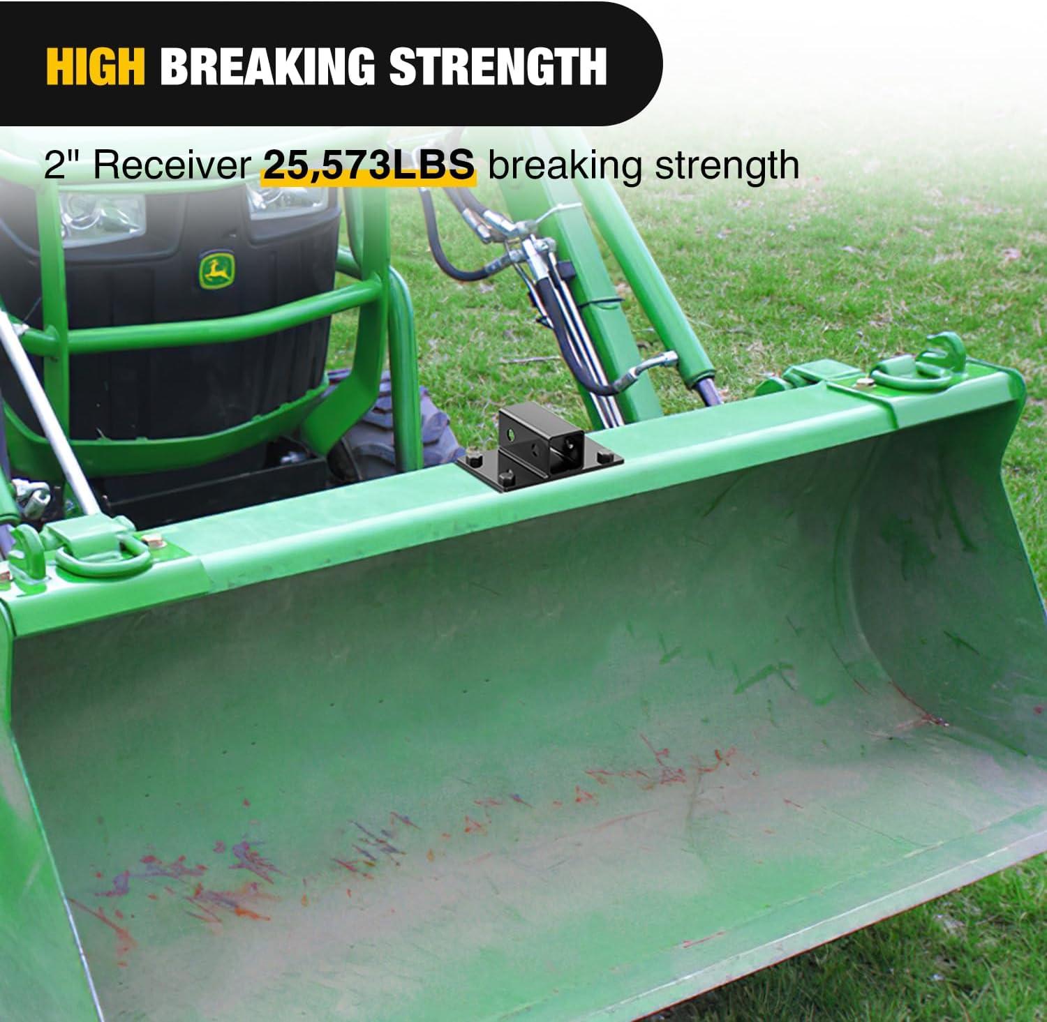 【Versatile Tool】Tractor Bucket 2 inch Receiver, 2″ Towing Hitch Receiver is the perfect addition to your tractor for the hobby farm enthusiast.Great for around-the-yard work requiring trailer hitches. In addition, also widely used for heavy duty work in industry, agriculture and construction.You will always find a job for the 2 inch receiver