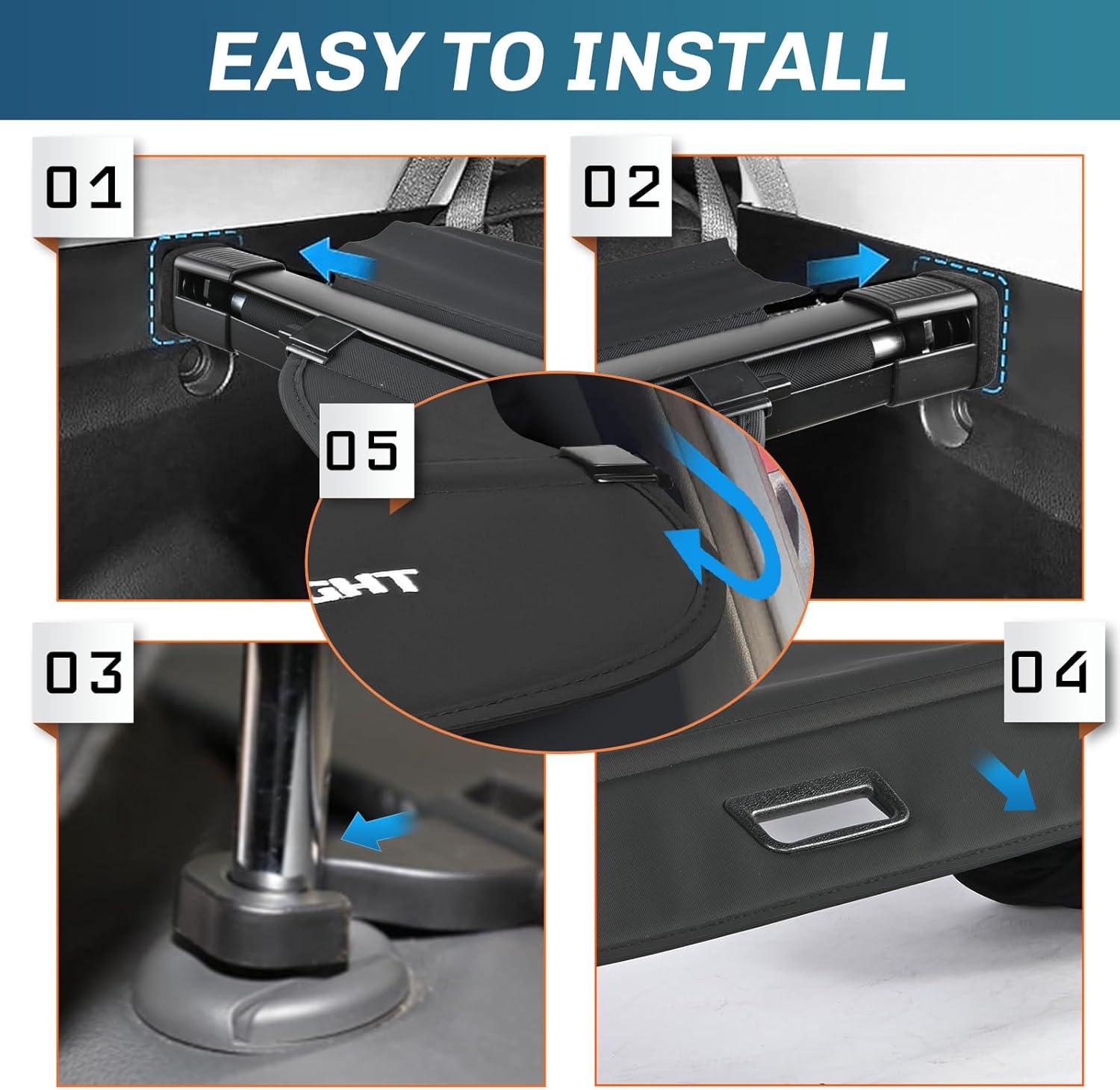 Easy Installation: The cargo cover is easy to install and requires no drilling or tools. Simply snap it into the original slots and retaining hooks in minutes. It retracts easily when not in use and includes an additional storage net to prevent your luggage from sliding during rough road driving