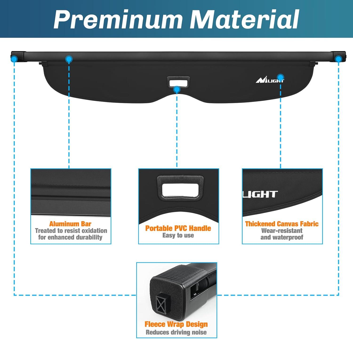 Durable Quality: Nilight trunk cargo cover is made from high strength canvas for durability. It is waterproof, dirt-resistant and scratch-resistant, providing long-lasting protection for your cargo area