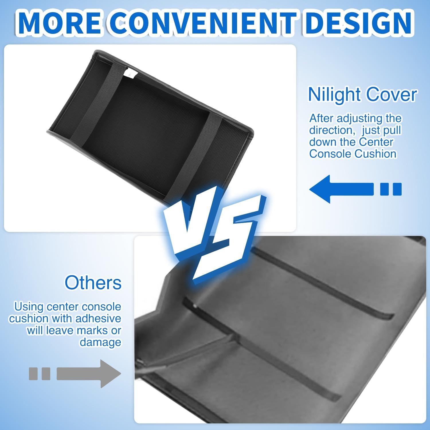 EASY INSTALLATION: Compared with the Center Console Cover installed with adhesive, Nilight armrest cover for car can be installed more easily. Just pull the armrest pad down from the top of the end and adjust the 4 corners so that the armrest pad covers the entire armrest lid, and finally tighten the elastic band with Velcro. The replaced armrest lid will not affect your opening or closing, and no tools are required to complete the installation