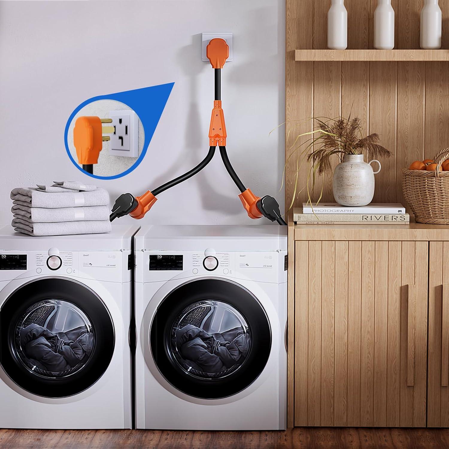 30A to 30A Adapter: Allows you to run your dryer in home with 4-prong 14-30R outlets. The NEMA 14-30P 4-prong plug is compatible with the 14-30R outlet. Note: 125V-250V Use for Dryer Power Extension. Not for RV. Please check if the receptacle of your home outlet is NEMA 14-30R.