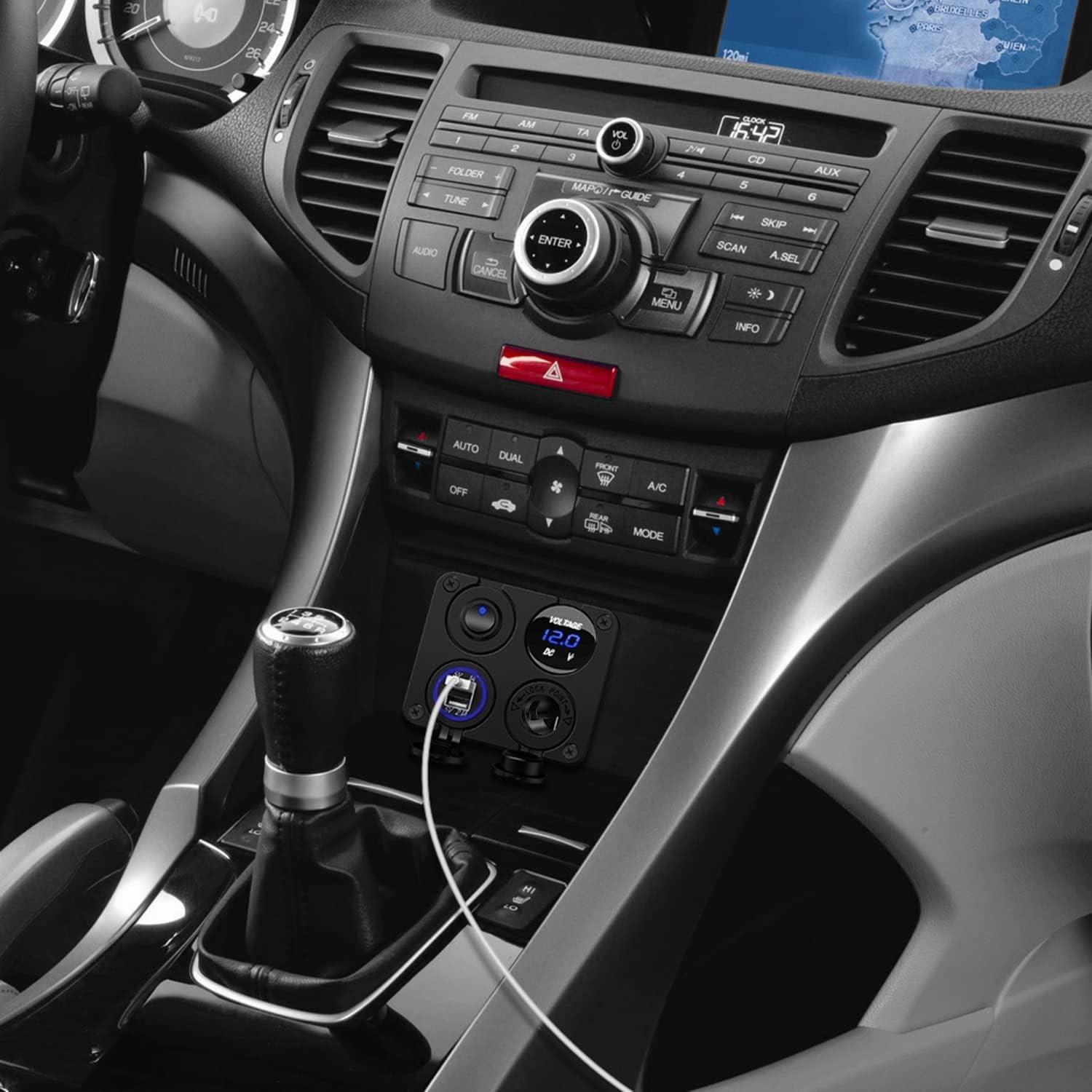 Multi-Functional Panel: This 12V panel is designed with 3 cigarette lighter outlets,USB charger,LED voltmeter and a on&off rocker switch.You can remove or change the ports around the bezel to any position. Easy DIY any components that fits the panel. Which is convenient to install and operate on 12VDC/24VDC vehicles