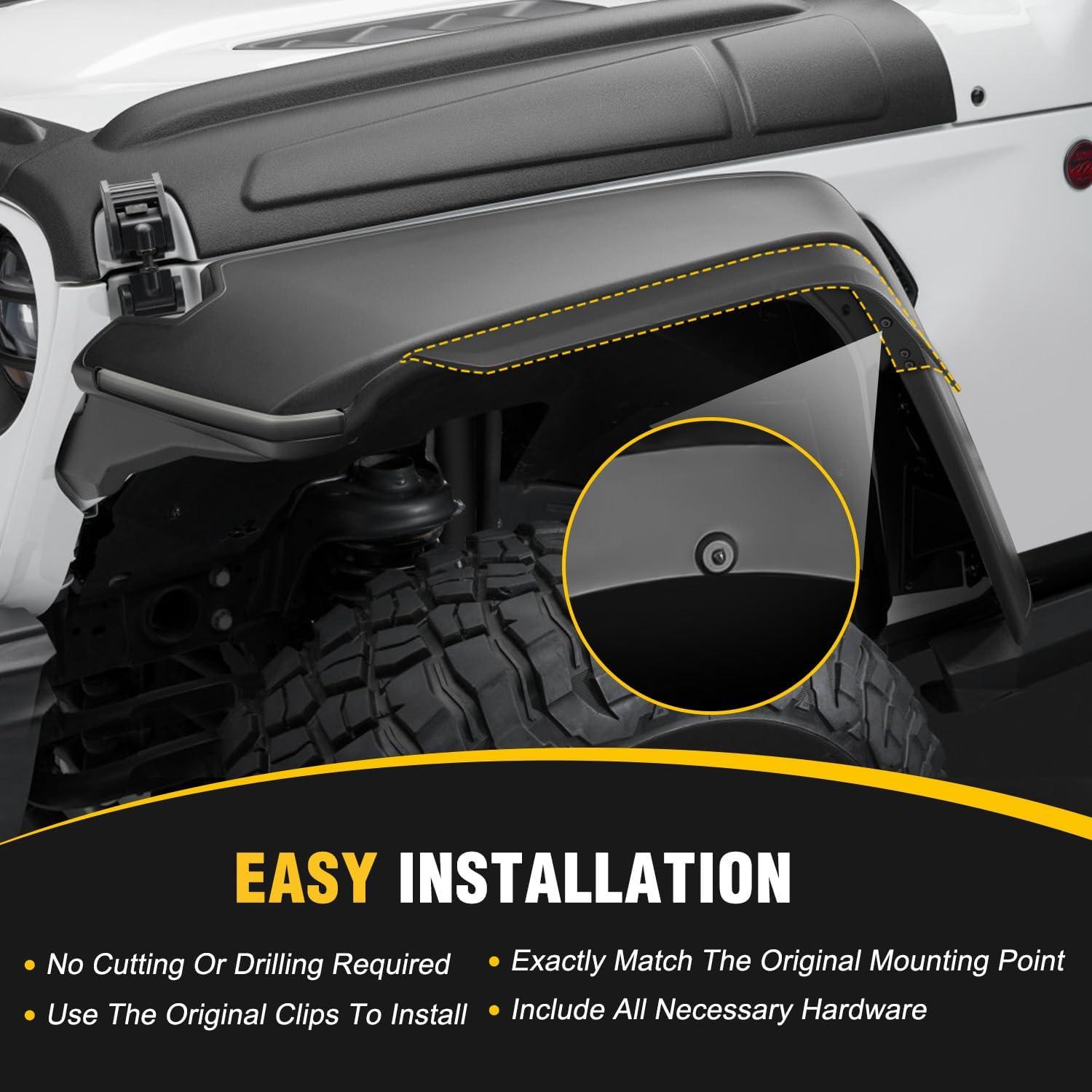 【PERFECT FIT】 – Compatible with 2020 2021 2022 2023 2024 2025 Jeep Gladiator JT (only for high wheel arches), includes 2 front driver fenders and 2 passenger side fenders (4 in total)