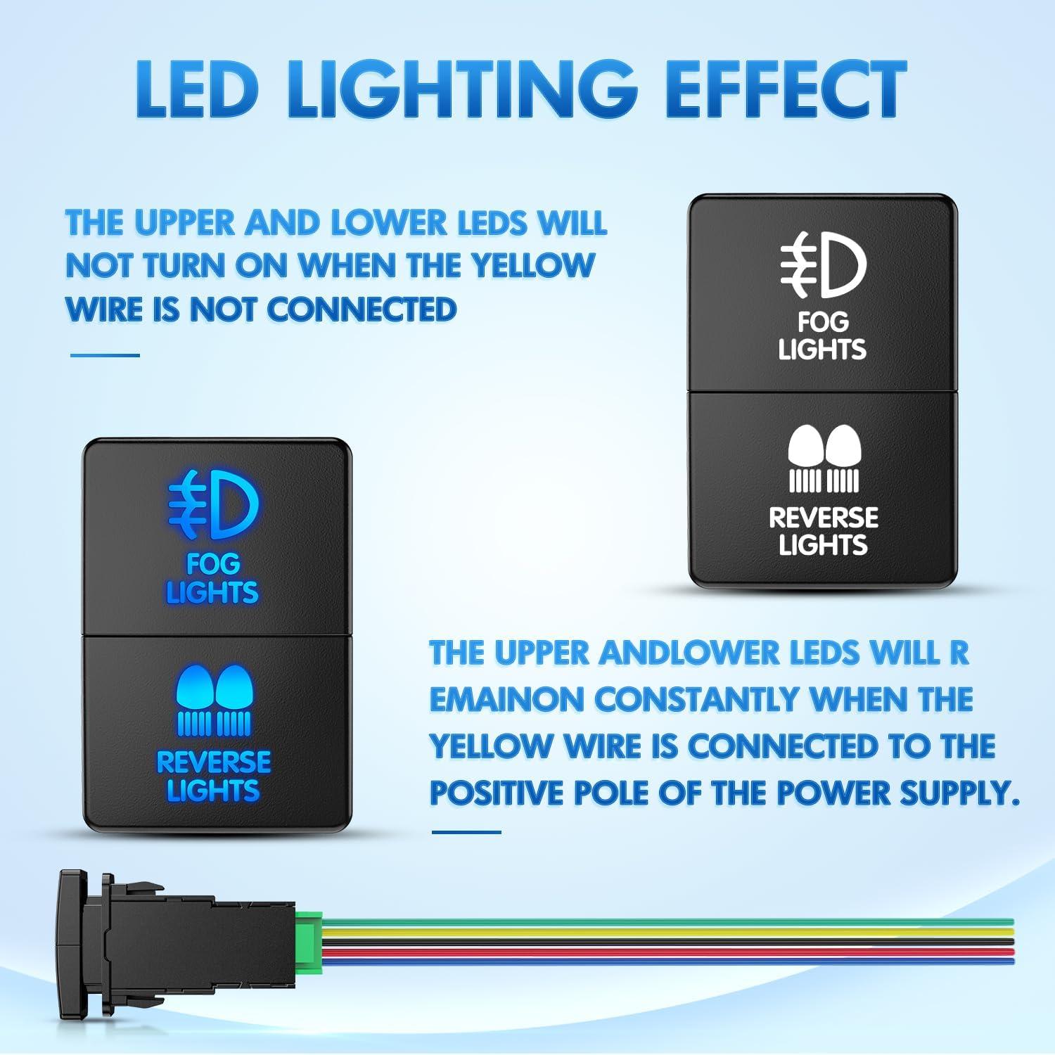 Nilight Fog Lights Push Button Switch 12V ON Off Switch with Connector Wire Kit 1.28″ x 0.87″ Replacement for Toyota Sequoia Highlander Tacoma Tundra 4Runner RAVR Yaris, 2 Years Warranty,Black(Fog Lights + Reverse Lights)