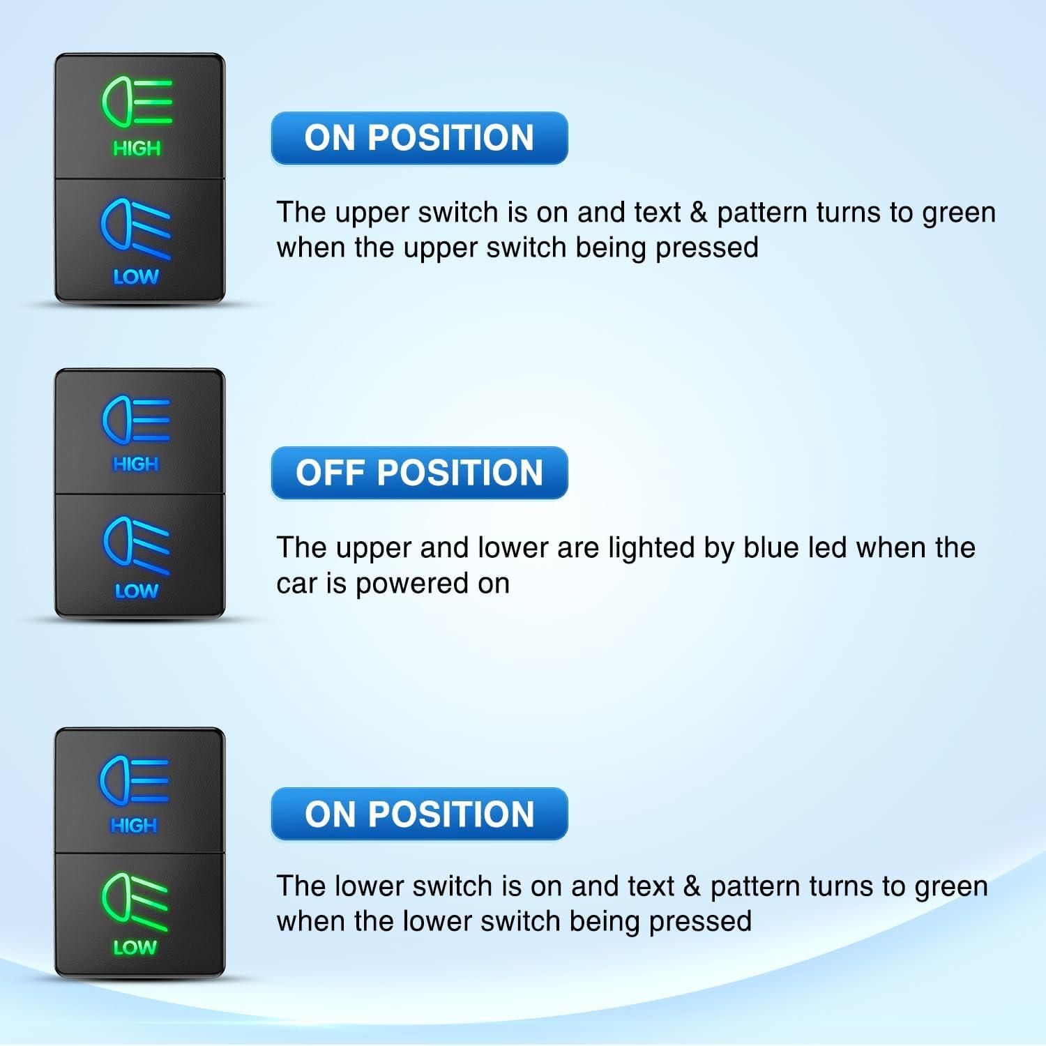 Push Button Switch: The ON-OFF rocker switch with SPST design (single pole single Throw) is manufactured to fit in the OEM switch blank for your cars. It come with a small pigtail that plugs into the back of the switch for better installation.