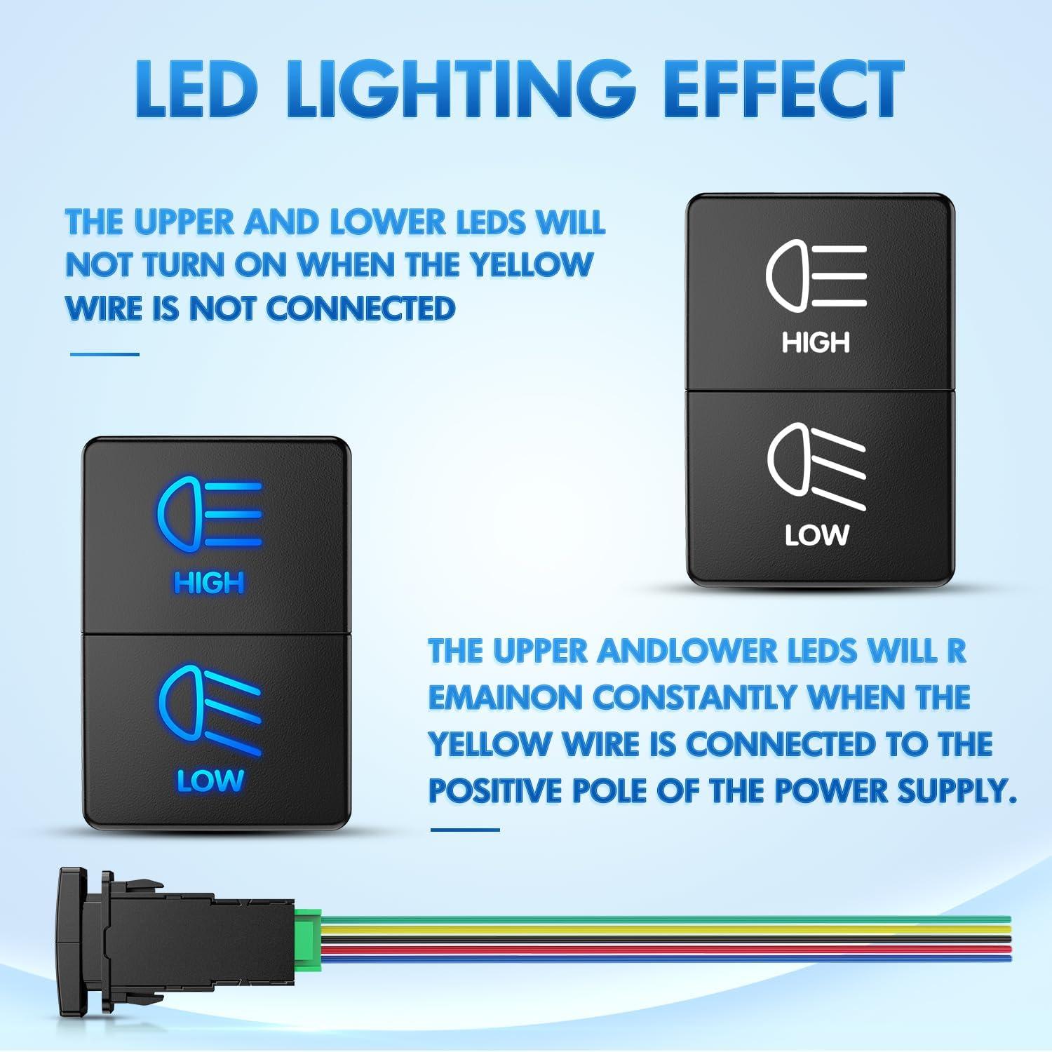 Nilight Fog Lights Push Button Switch 12V ON Off Switch with Connector Wire Kit 1.28″ x 0.87″ Replacement for Toyota Sequoia Highlander Tacoma Tundra 4Runner RAVR Yaris, 2 Years Warranty,Black(High Beam + Low Beam)