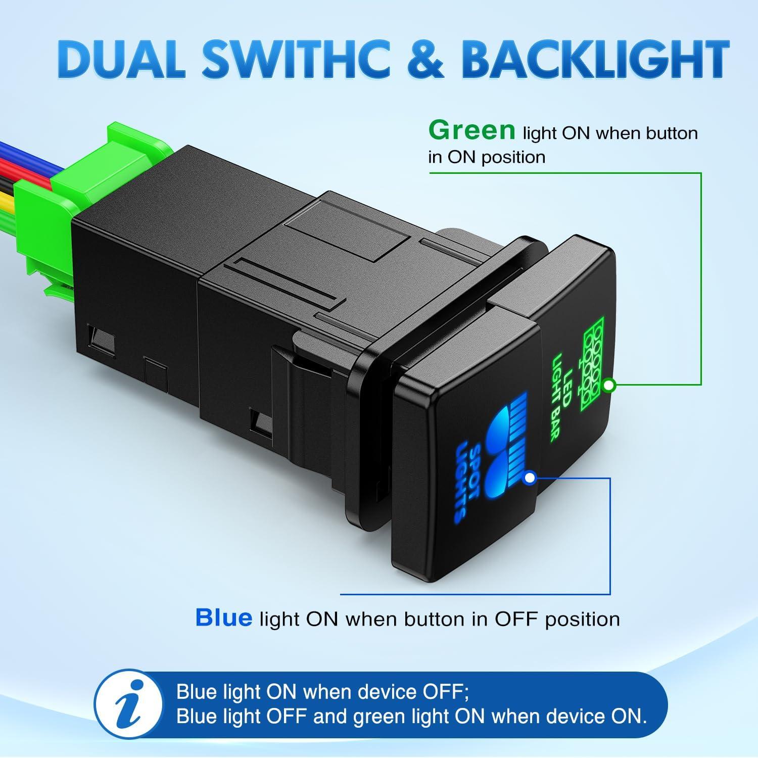 Nilight Fog Lights Push Button Switch 12V ON Off Switch with Connector Wire Kit 1.28″ x 0.87″ Replacement for Toyota Sequoia Highlander Tacoma Tundra 4Runner RAVR Yaris, 2 Years Warranty,Black(LED Light Bar + Spot Lights)