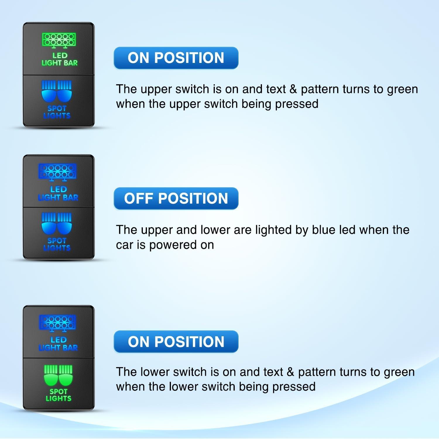 Nilight 90104B 2Gang Aluminum Laser Rear LED Light Bar Rocker 12/24V 5Pin ON/Off Pre-Wired Toggle Switch Panel for Marine Boat Car ATV UTV,2 Years Warranty Blue(LED LIGHT BAR+LED POD LIGHTS)