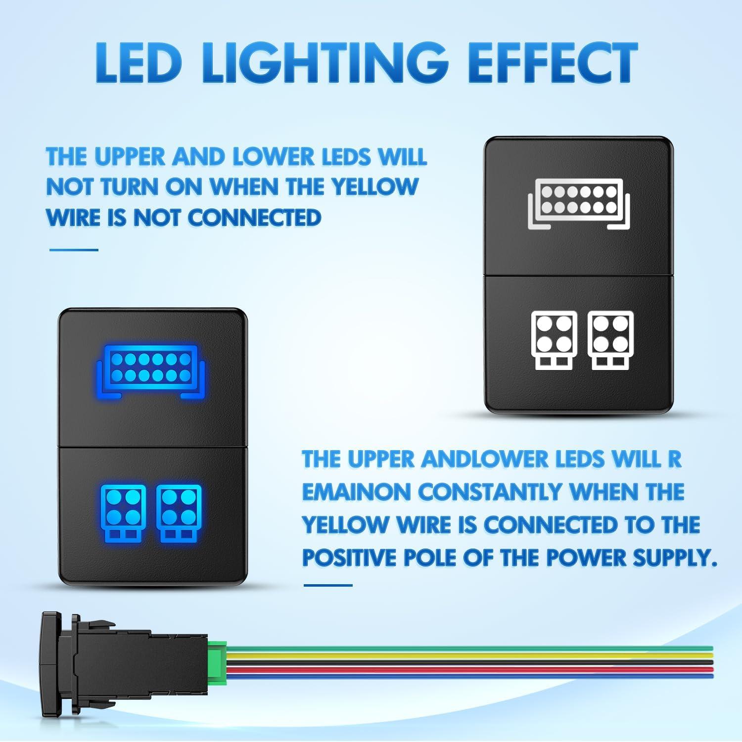 Nilight Fog Lights Push Button Switch 12V ON Off Switch with Connector Wire Kit 1.28″ x 0.87″ Replacement for Toyota Sequoia Highlander Tacoma Tundra 4Runner RAVR Yaris, 2 Years Warranty,Black(LED Light BAR + LED Work Lights)