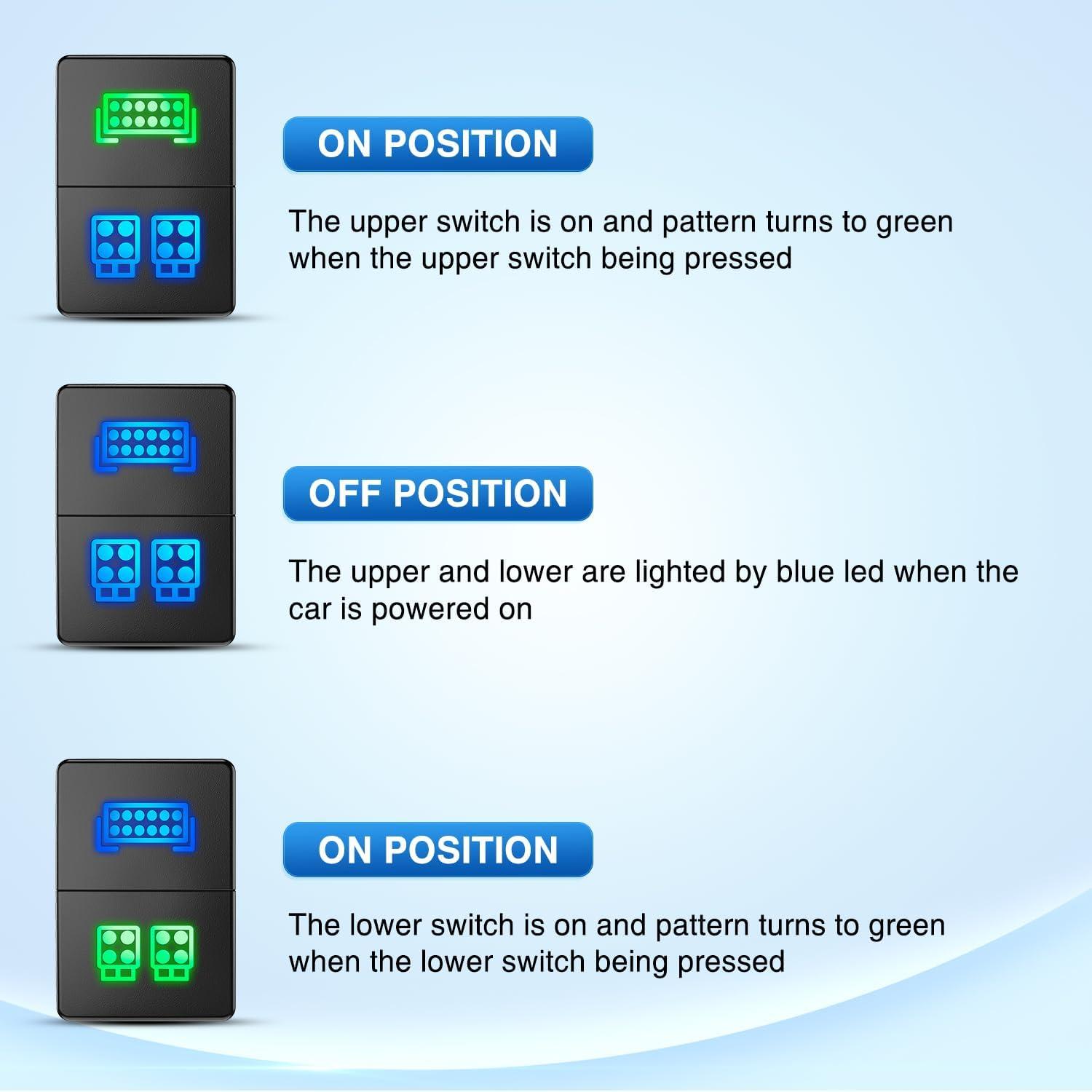 Nilight 90104B 2Gang Aluminum Laser Rear LED Light Bar Rocker 12/24V 5Pin ON/Off Pre-Wired Toggle Switch Panel for Marine Boat Car ATV UTV,2 Years Warranty Blue(LED LIGHT BAR+LED POD LIGHTS)