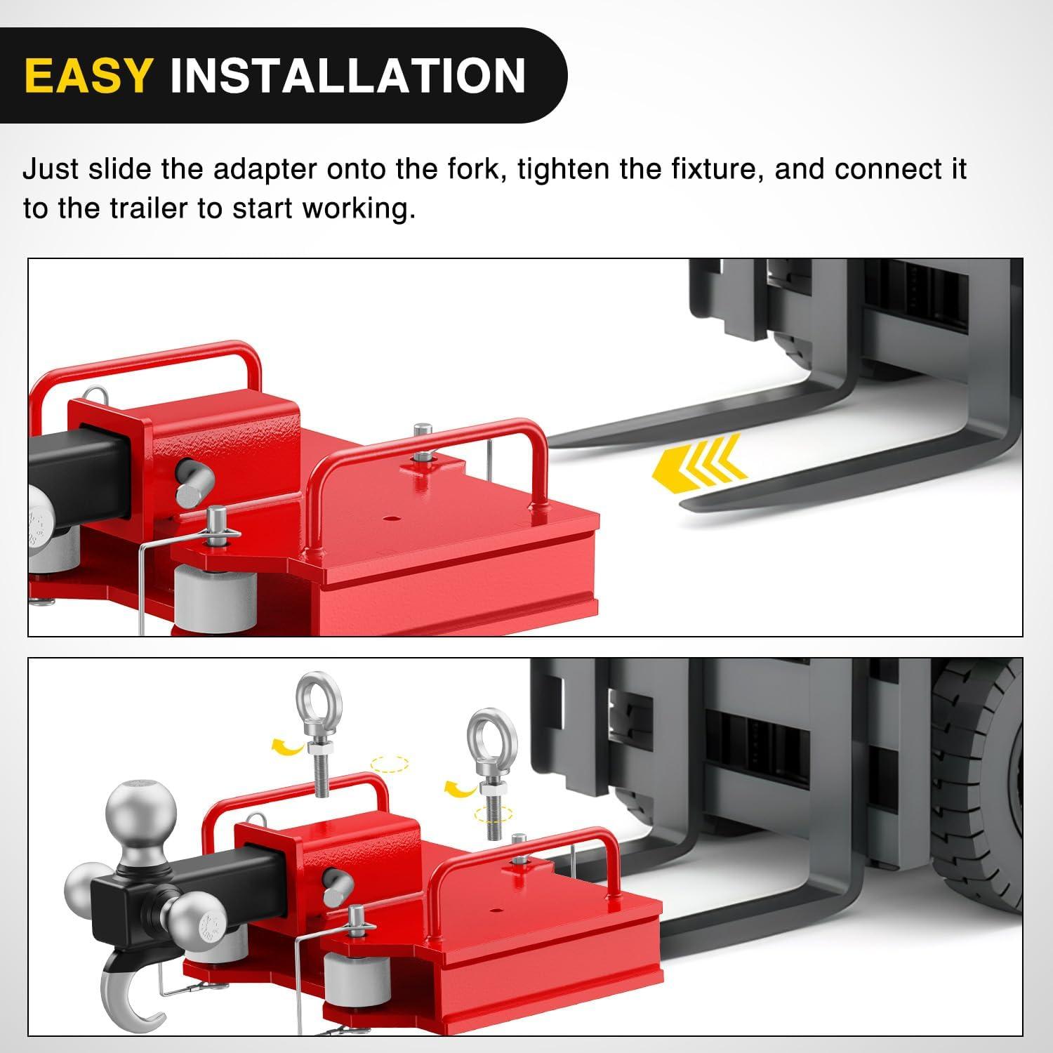 Nilight Forklift Trailer Hitch Attachment Fits 2 Inch Receiver Clamp on Pallet Fork Trailer Towing Adapter with Safety Chain & 5/8” Hitch Pin Clip Red(Dual Pallet Forklift)