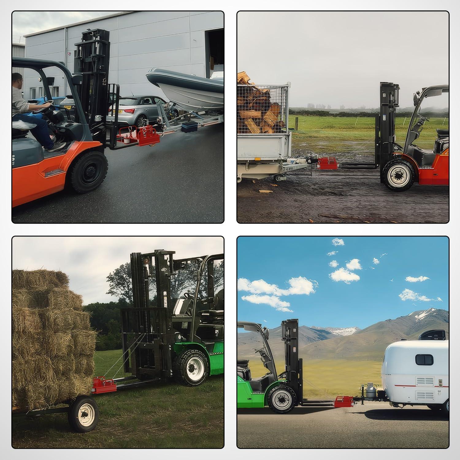 【DEPENDABLE STRENGTH】- It is made of heavy duty steel construction. Strong gloss Red powder coated finish. Long-term outdoor use, no rust. With a durable safety chain and 2 handles for fixing the forks, adding stability and safety.