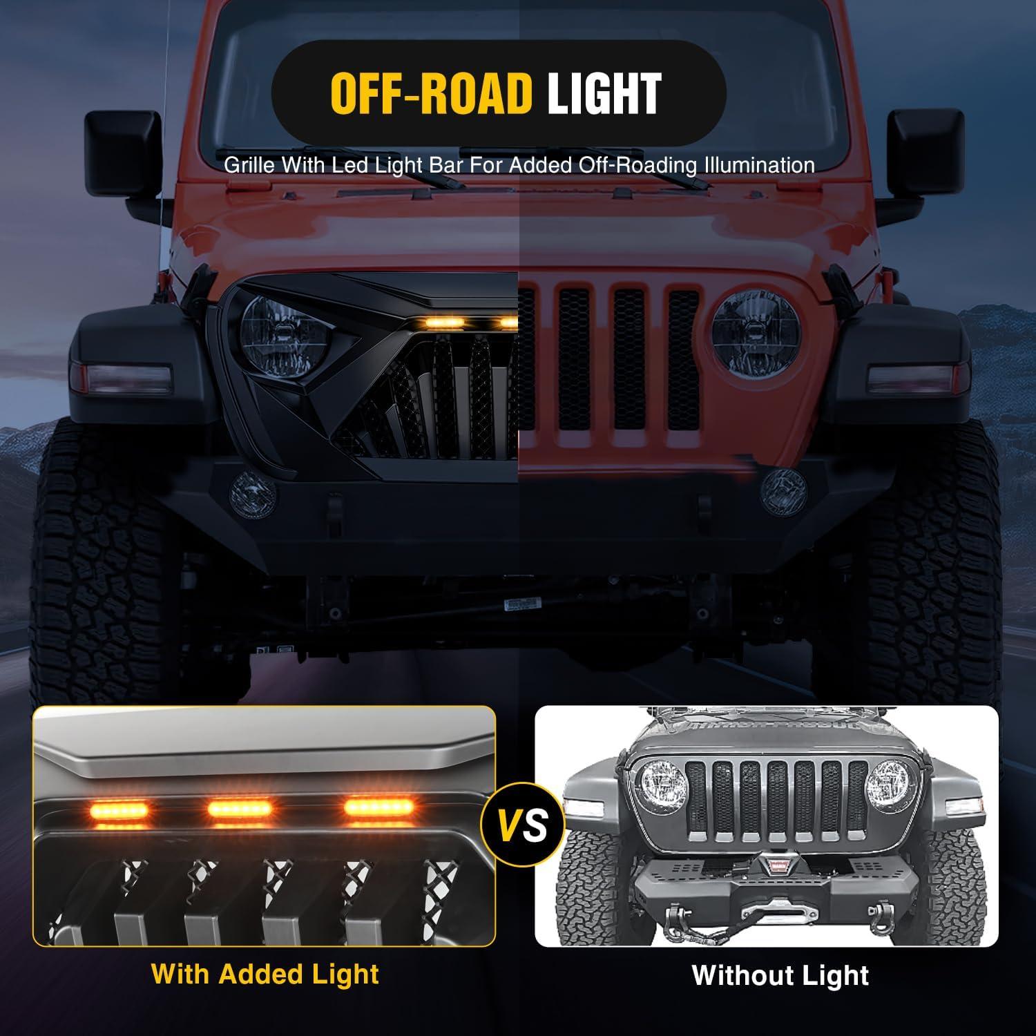 Off-Road Lights – Grille with LED light bar for added off-roading illumination; Looks great with a stark, menacing, innovative design