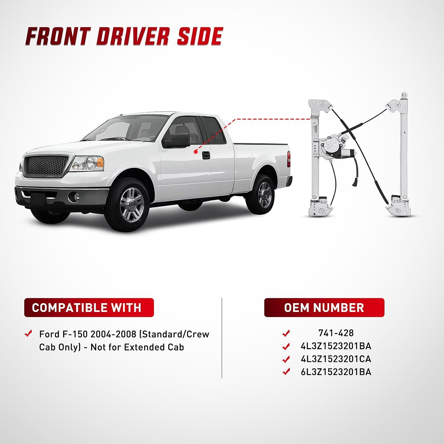 Nilight Front Driver Side Power Window Regulator/Motor Compatible with Ford F150 2004 2005 2006 2007 2008(Standard/Crew Cab Only) Left Side 741-428(Front Driver)
