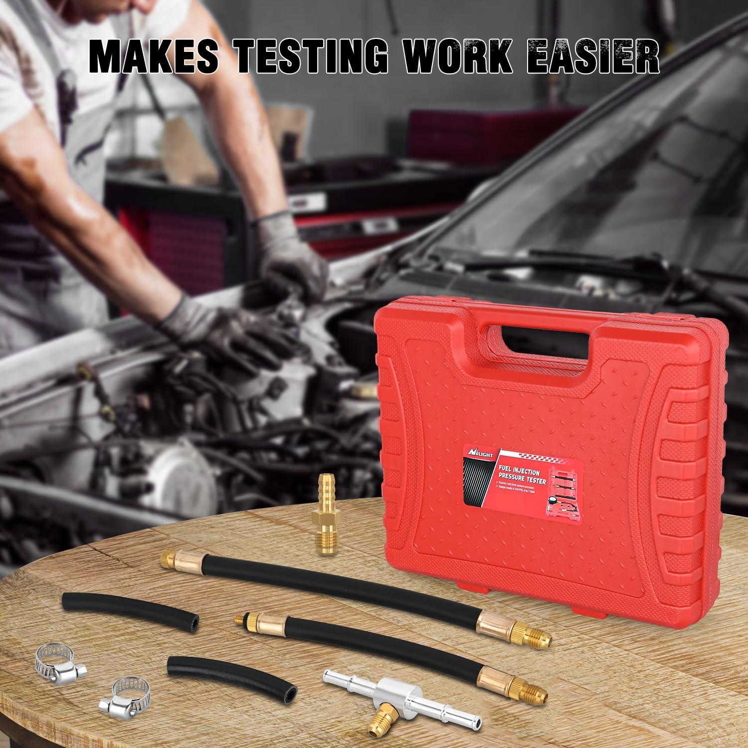 Convenient Storage: This fuel injection pressure tester kit is contained in a carrying case, design for quick storage and easy transportation. A must-have efficient tool set for the task of vehicles maintenance