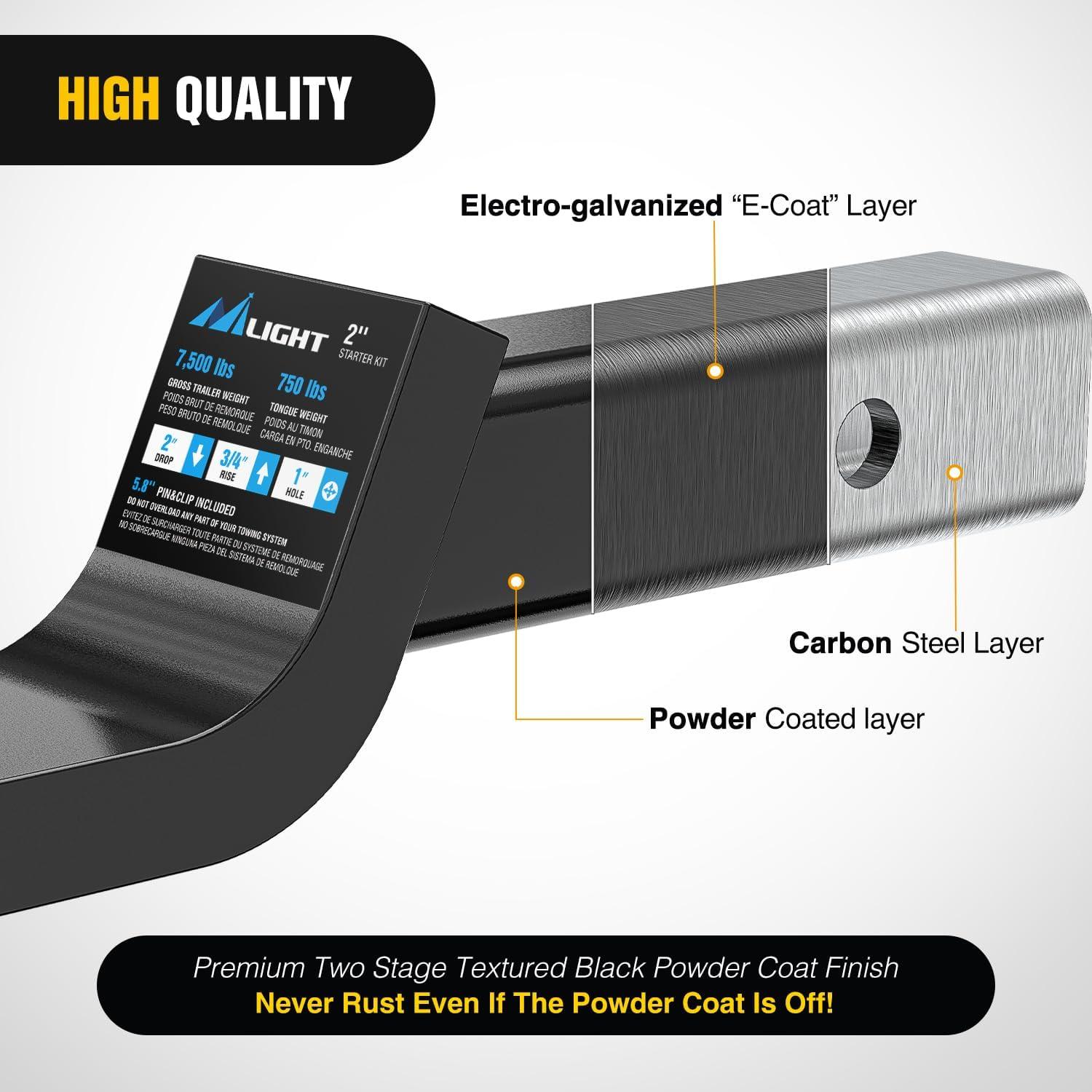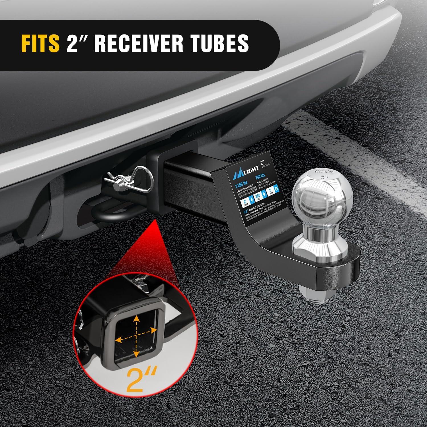 【Heavy Duty Trailer Hitch】- Offers a gross trailer weight capacity of up to 5,000 lbs and 500 pounds tongue weight, Perfect for towing trailer, campers, hauling motorcycles and ATVs with 2 inch standard hitch receiver