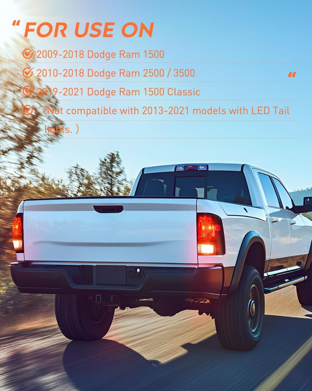 Vehicle fitment: compatible with 2009-2018 Dodge Ram 1500, 2010-2018 Dodge Ram 2500/3500. Only fit factory quad style halogen headlights. Fit Headlight with two hole for high beam and low beam, do not fit headlights with one hole for both high beam and low beam. NOT compatible with factory LED version. Do not fit 2010-2018 Dodge Ram models with factory projector LED-style headlights