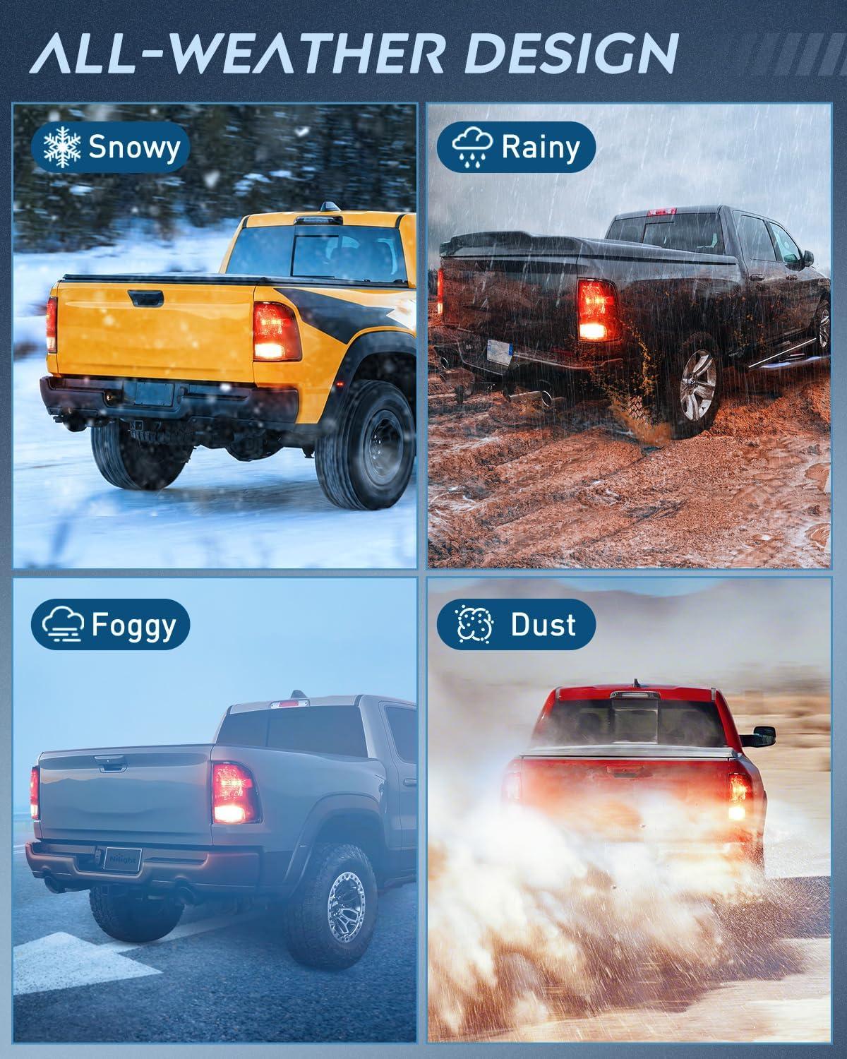 Durability: The high-impact housing withstands shock and vibration. With fully sealed silicon prevents environmental damages including freezing, foggy, fading, corrosion, and provides reliable service in sorts of weather conditions such as rain, snow, or dust storms, enabling your car looks better and drive safer