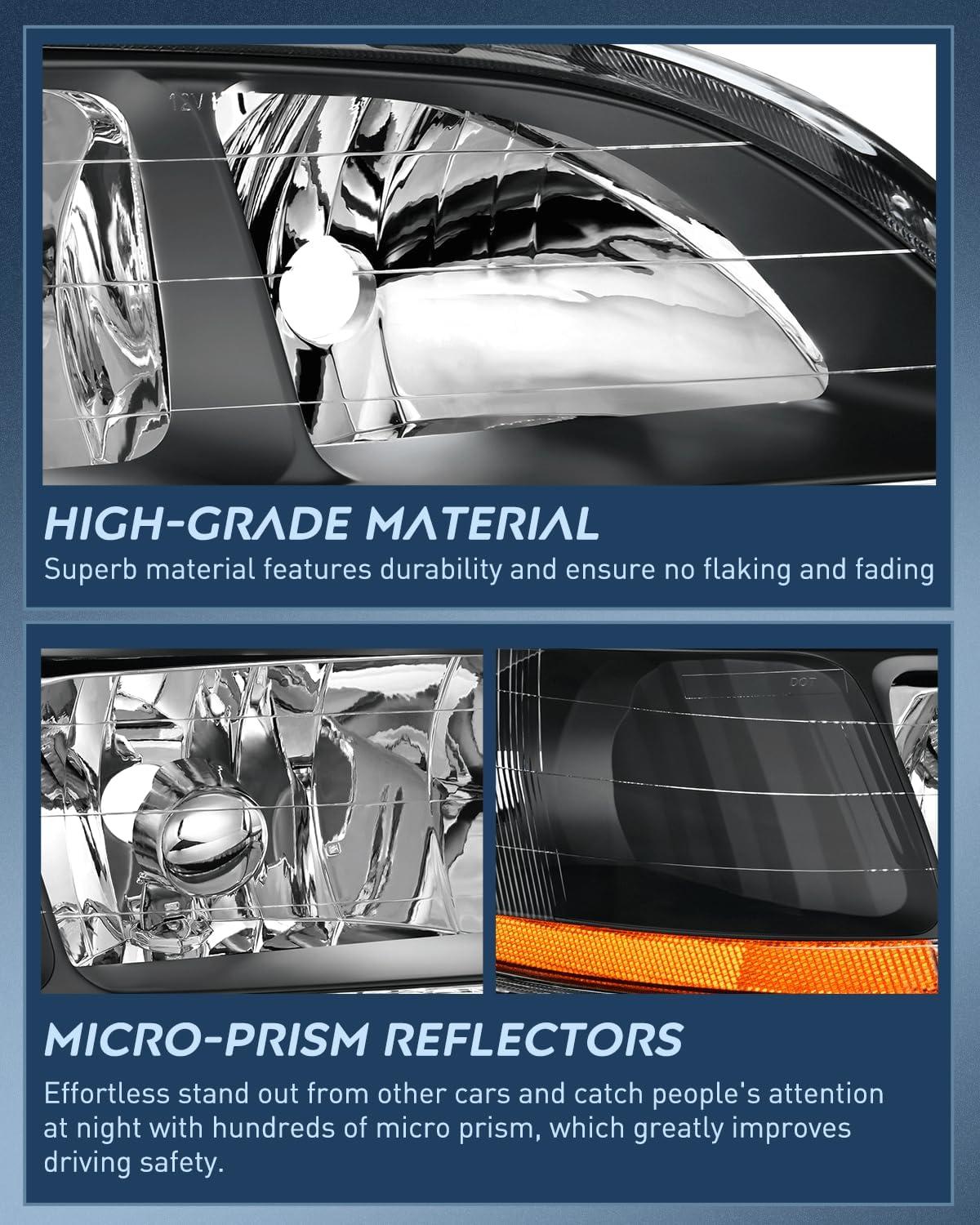Nilight Headlight Assembly Compatible with 1998 1999 2000 2001 2002 Honda Accord Headlamps Replacement Black Housing Clear Reflector Upgraded Clear Lens Driver and Passenger Side(Black Housing+ Amber Reflector)