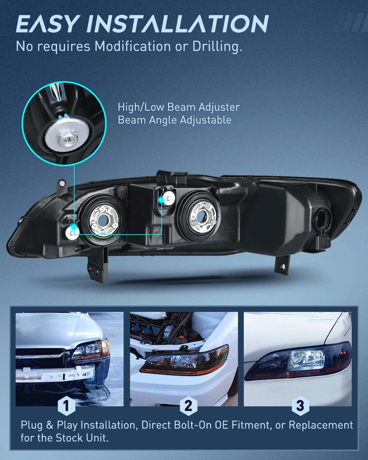DOT Compliance and safe Driving: To ensure driving safety for you and the oncoming driving circumstance, our 1998 1999 2000 2001 2002 Honda Accord headlights are DOT & SAE compliant. Our headlights provides clearer and further vision to see the wild animals, falling rocks or other obstacles at night. Reduce the possibility of danger.
